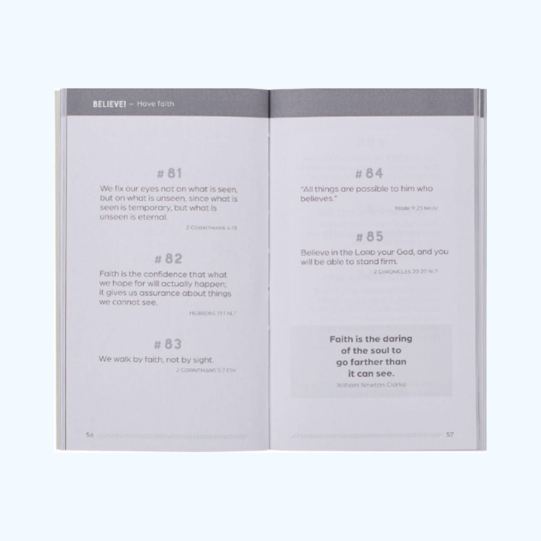 Storing God’s Word in our hearts is exceptionally important. Organised thematically, these short verses are ideal for memorisation and offer a source of comfort, strength, encouragement and inspiration for repeated reflection at the beginning or end of every day.