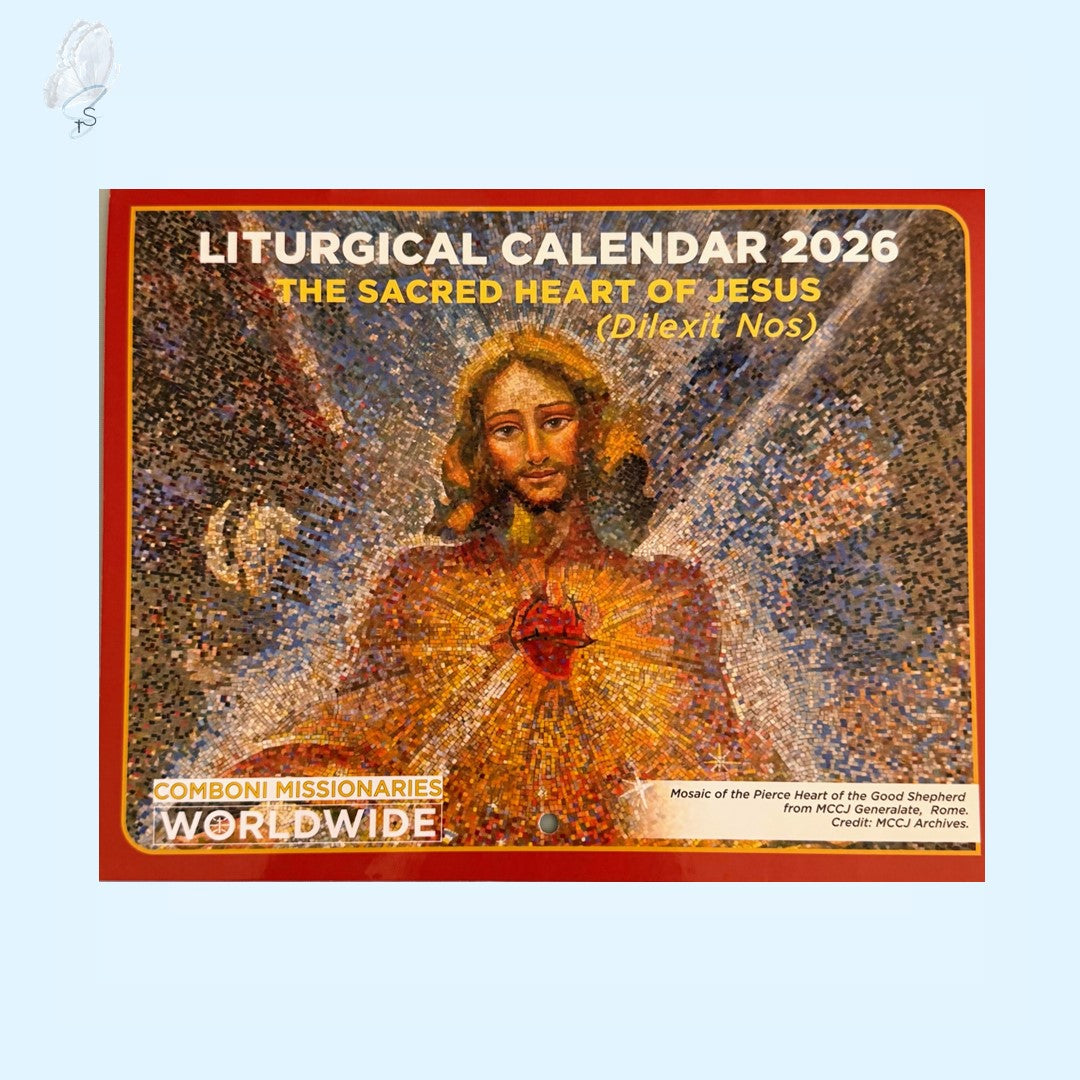 - Comboni Missionaries Calendar: vibrant sacred artworks, 2026 cover mosaic of the Pierced Heart of Jesus