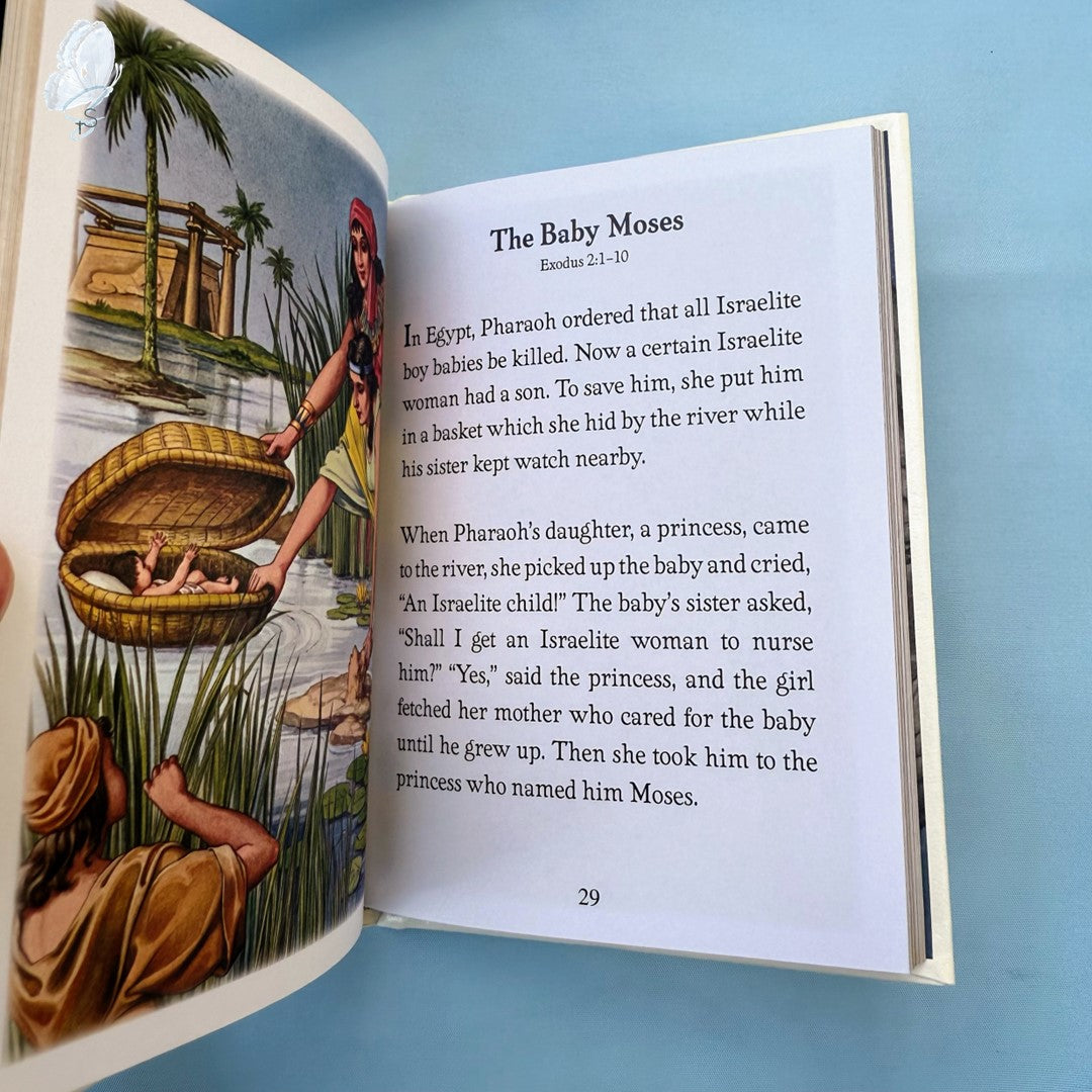 Each Bible story is told in simple, engaging language, paired with a corresponding full-colour illustration across a two-page spread—perfect for early readers or shared family reading. With its slim profile, gold-edged pages, and classic presentation pages, this bestselling edition (over 1 million copies sold worldwide) is both meaningful and enduring.