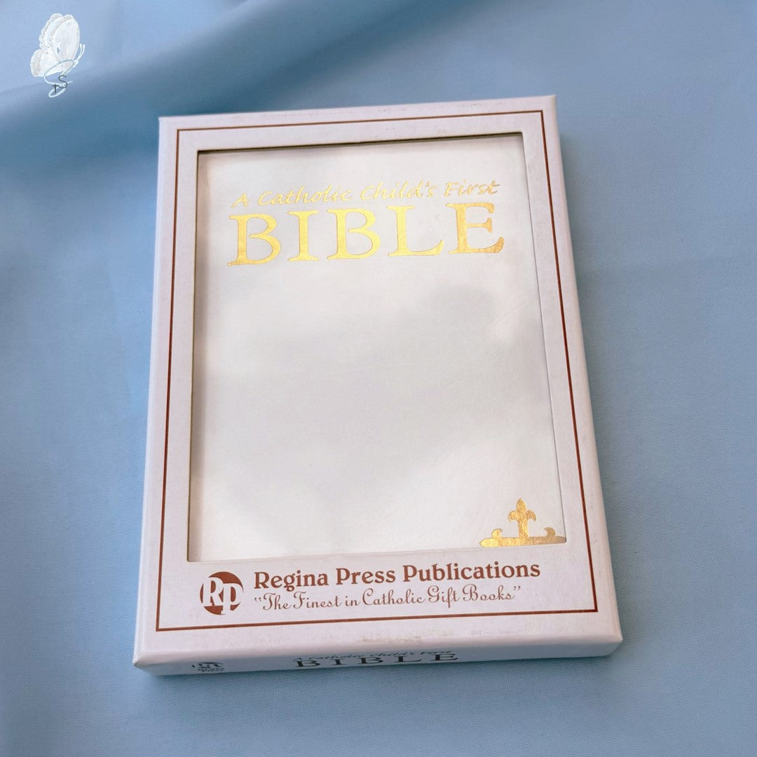 This beautifully bound first Bible is the perfect introduction to Scripture for young Catholics aged 5–7. Featuring a white padded leather cover with gold foil text, it comes presented in an elegant gift box—making it an ideal keepsake for a birthday, Christmas, or the start of school.