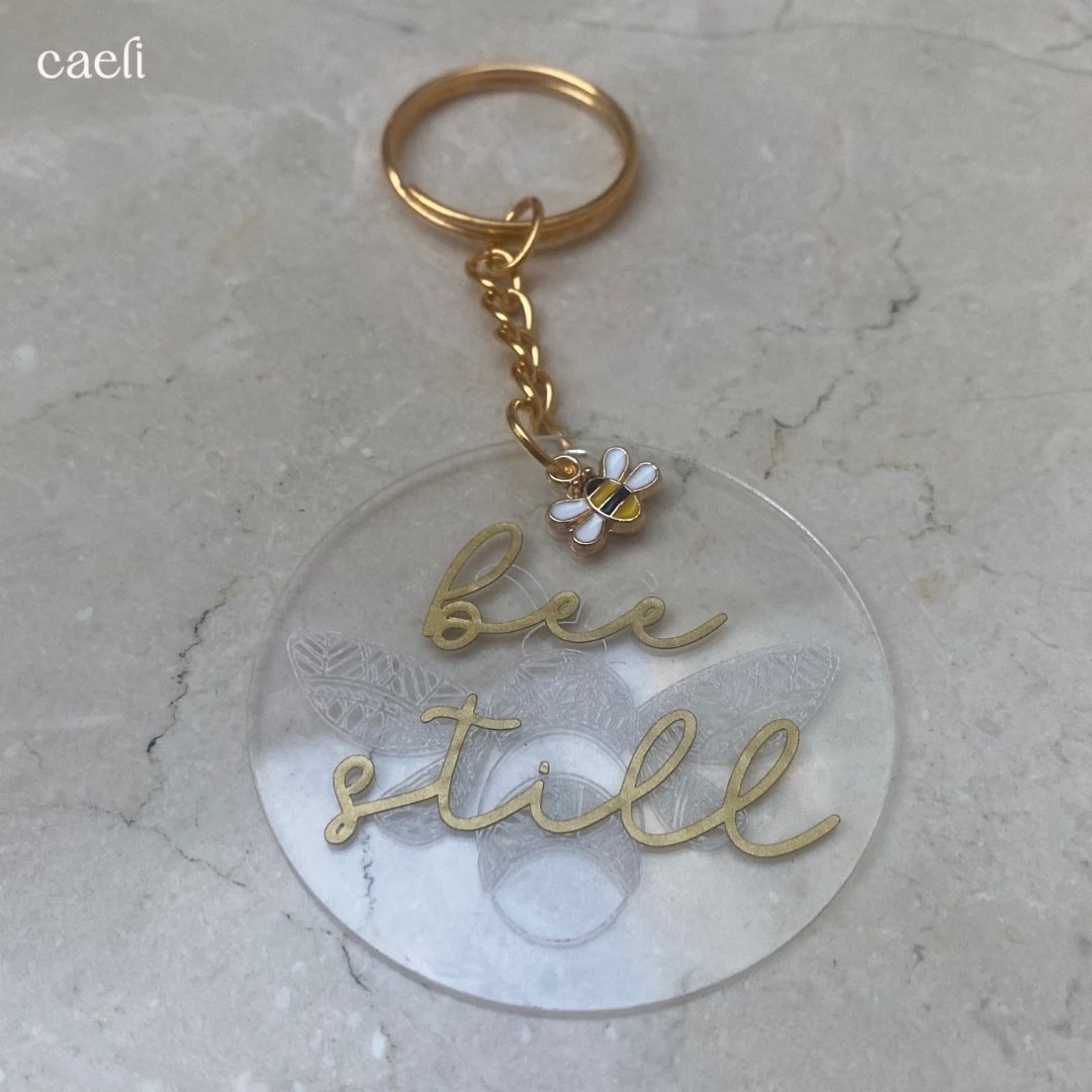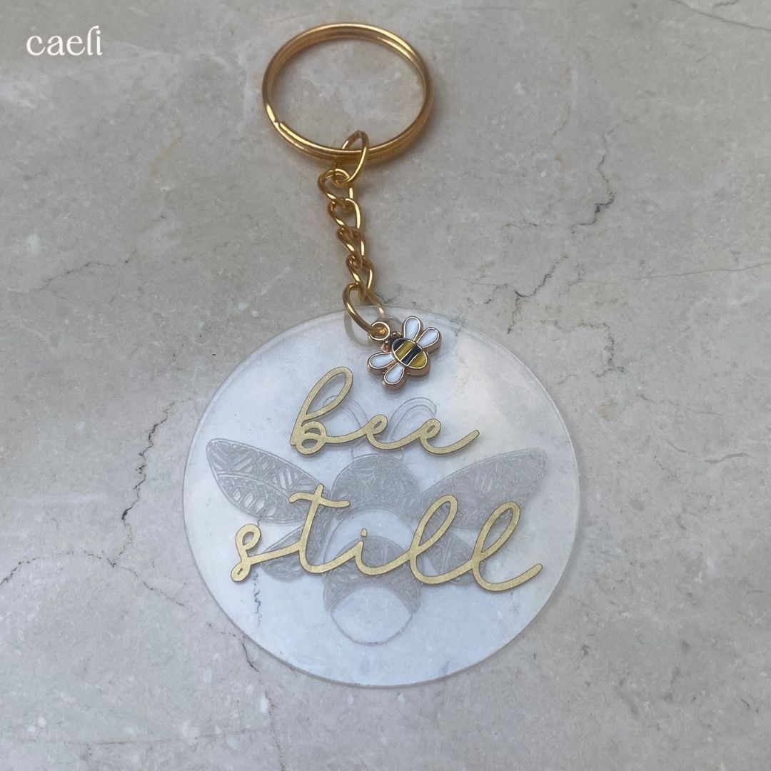 Busy Bee Collection | Bee Still Acrylic Key Ring | Christian Acrylic Keychain
