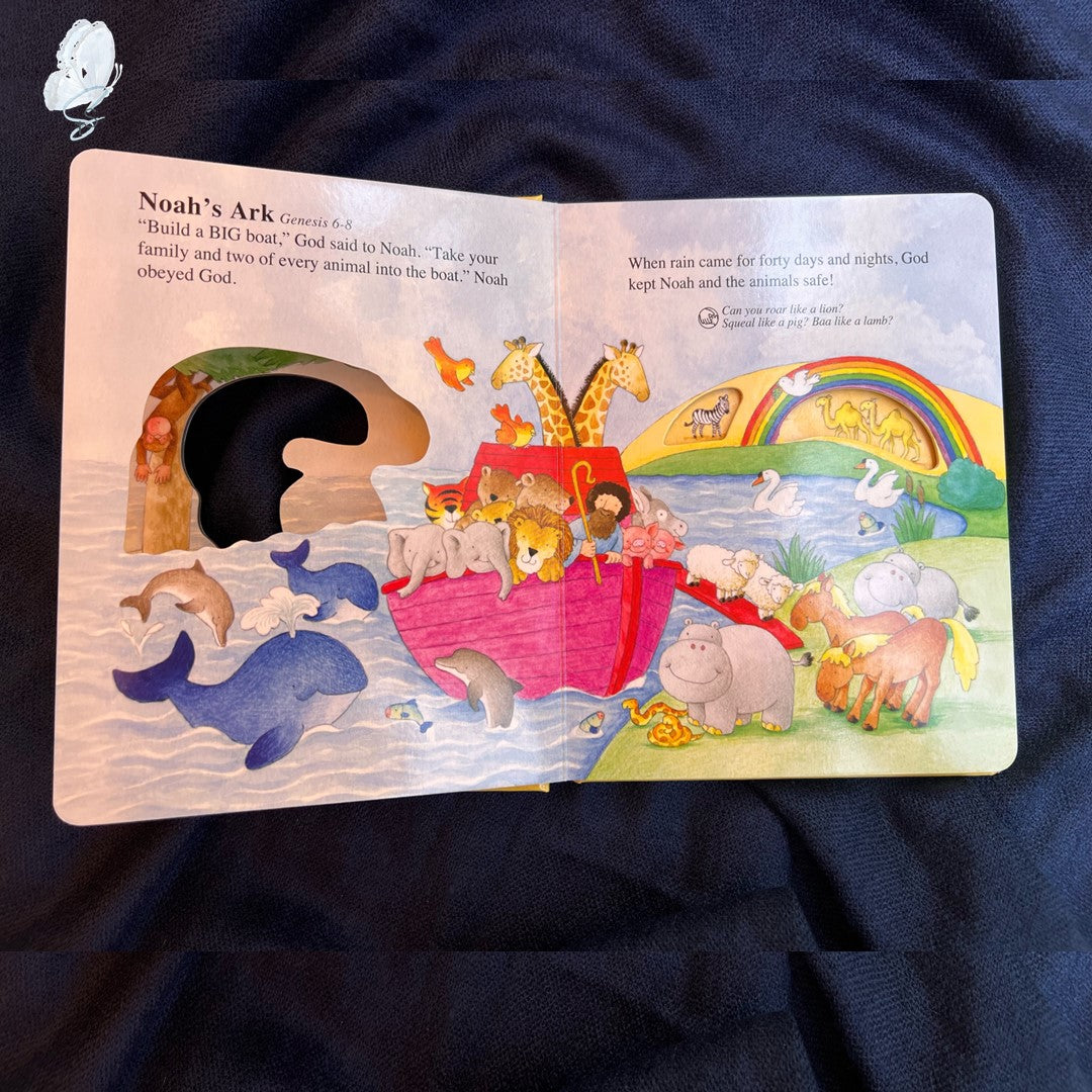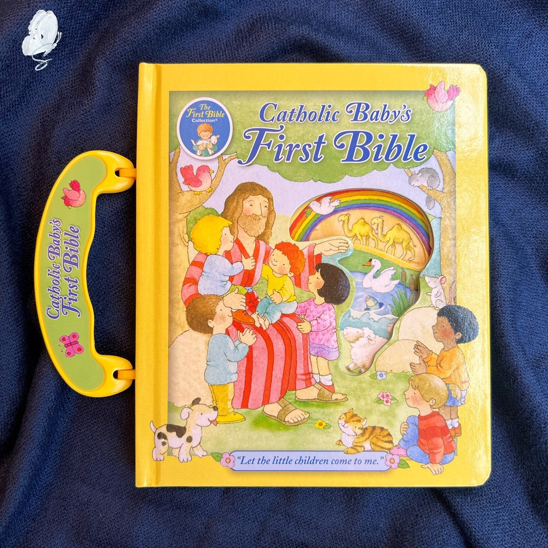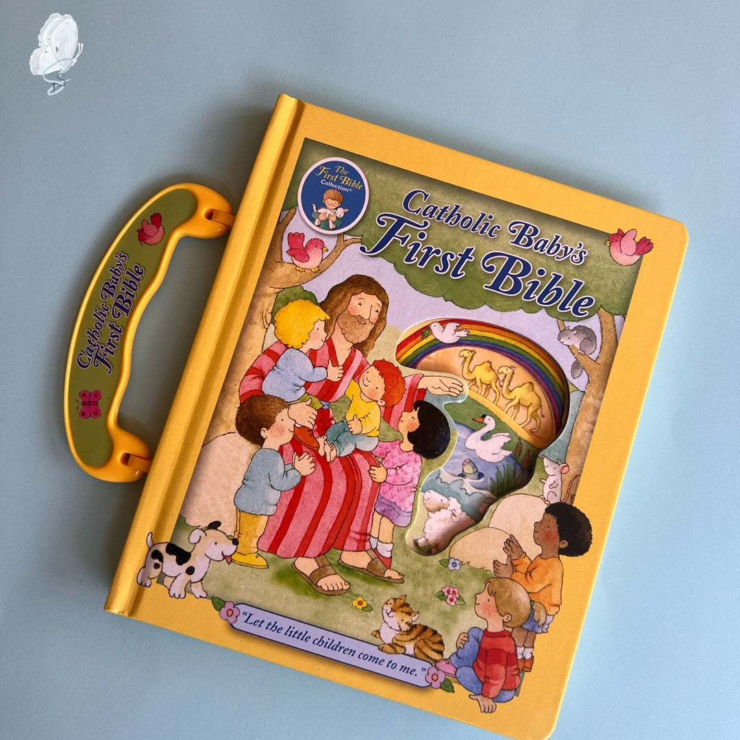 This is a beautifully illustrated carry-along board book designed for babies and preschoolers, offering a simple and engaging way to introduce them to the key stories of the Bible. This delightful book includes the Our Father, Hail Mary, and ten beloved Bible stories, including "What God Made" (Genesis 1), Noah's Ark, Baby Moses, David the Shepherd, Daniel, Baby Jesus, Jesus at the Temple, Zaccheus, Jesus Stops a Storm, and Jesus is Alive.