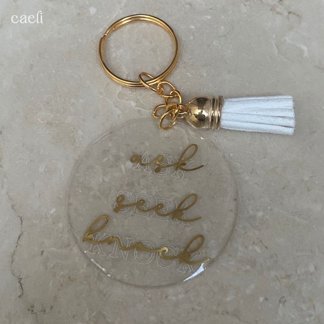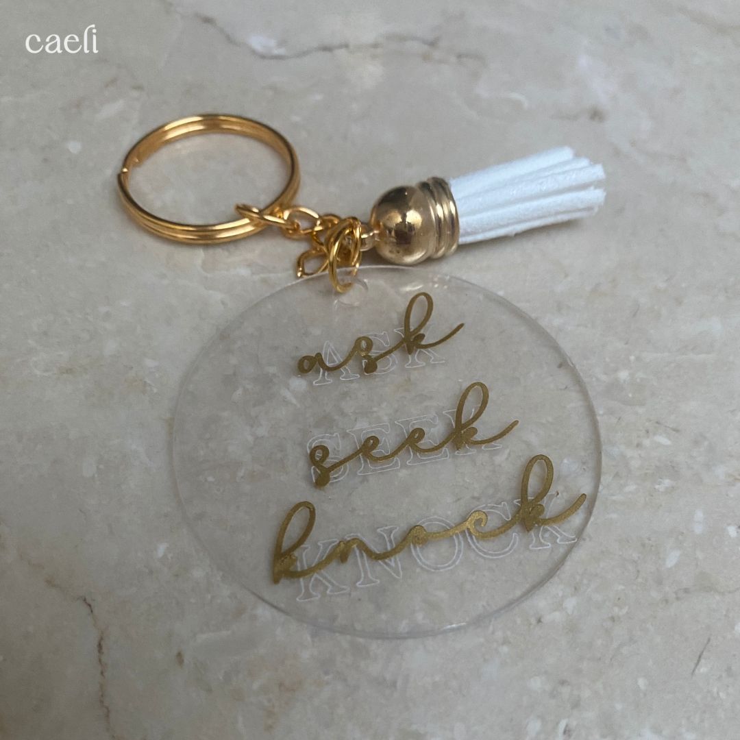 Christian Acrylic Keychain | Ask, Seek, Knock | Matthew 7:7-8 | Acrylic Keyring