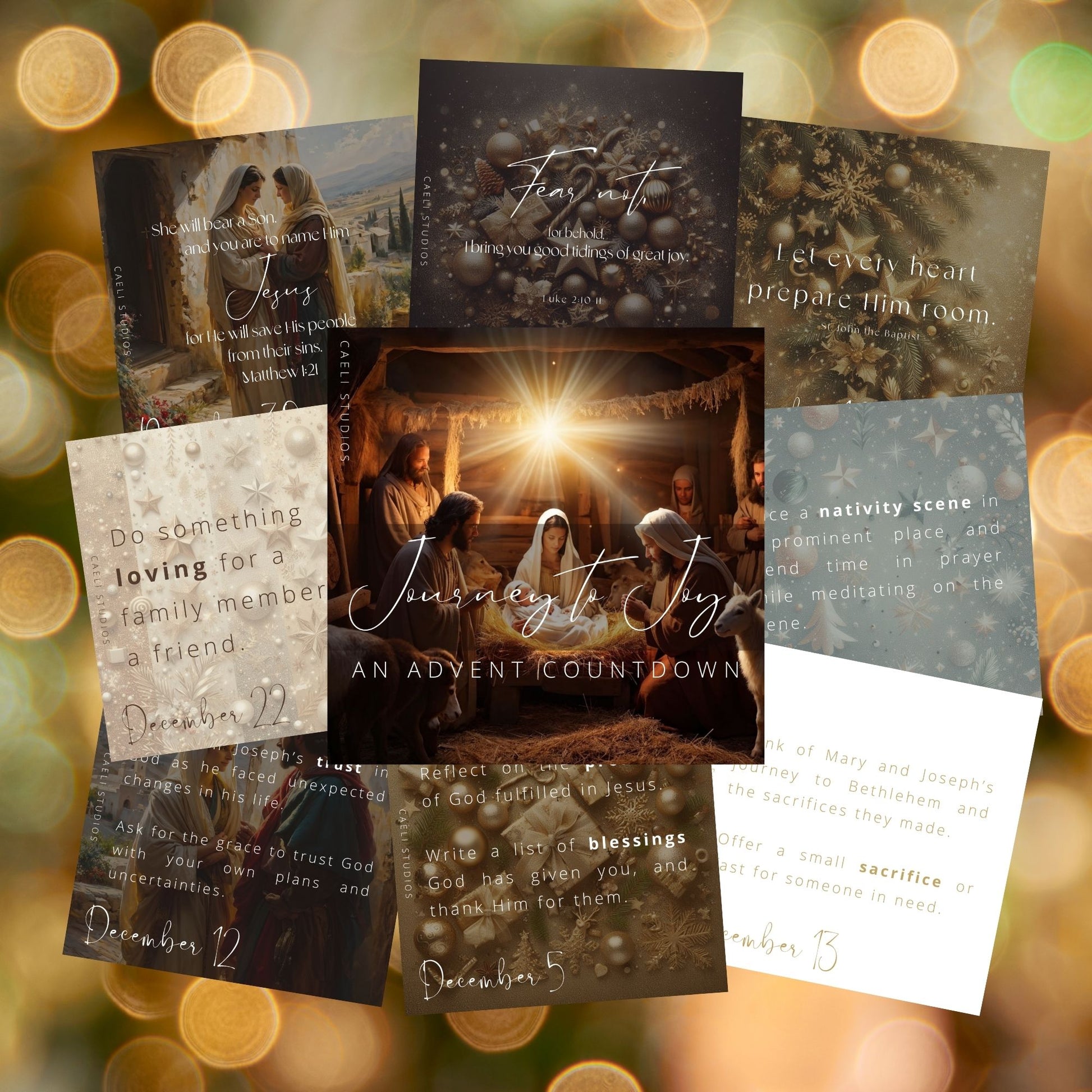 - 30-Day Countdown: From November 27 to December 25, each card features a daily scripture or reflection