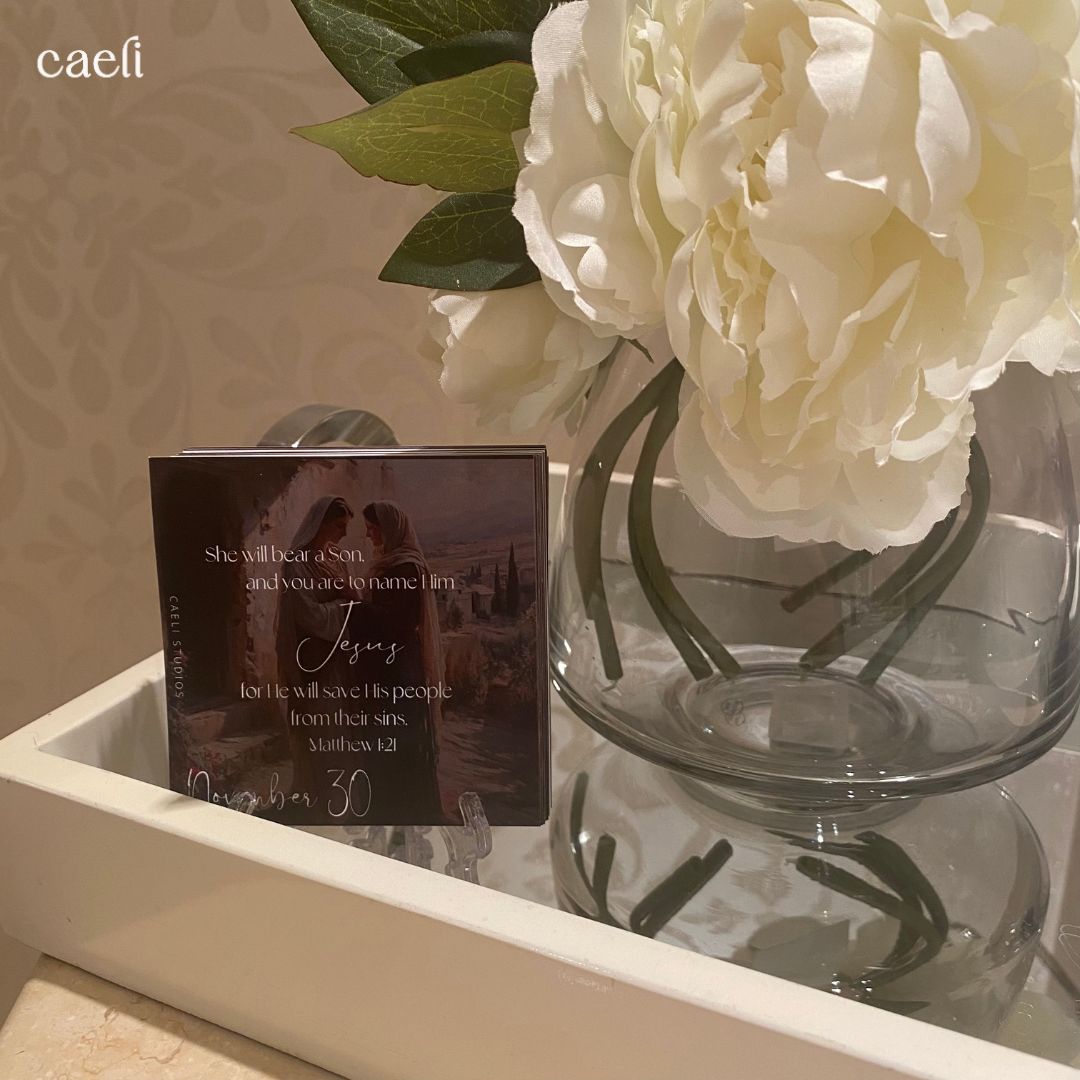 The set also comes with a small stand, allowing you to display each day’s card for easy reading and reflection. With timeless design and quality, this Advent countdown can be used year after year, making it a cherished part of your holiday traditions. Each card is thoughtfully crafted to inspire, uplift, and keep the focus on the true meaning of Advent.