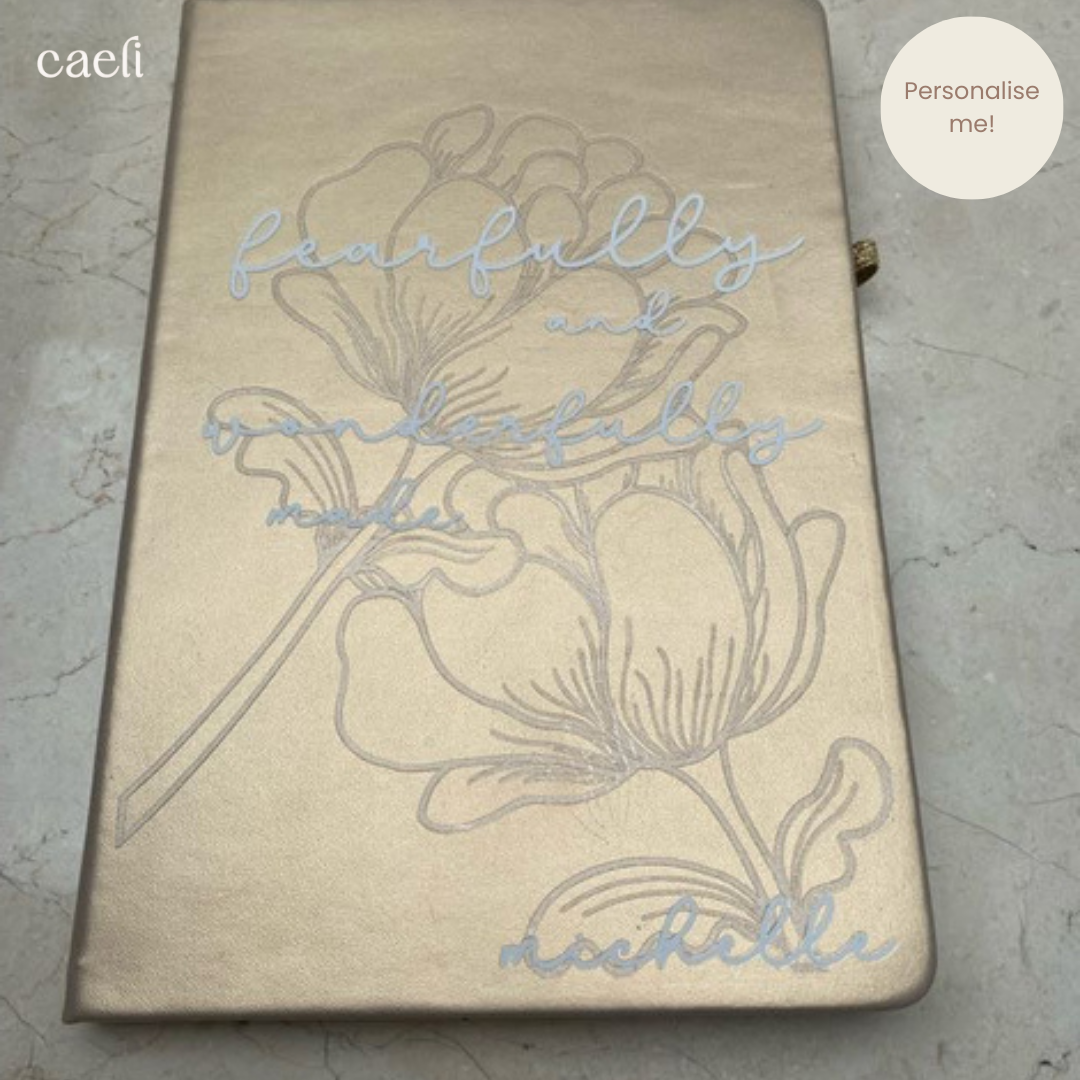 Our elegant A5 Notebook, beautifully inscribed with your favourite scripture verse. This compact notebook is perfect for journaling, prayers, and reflections, with its luxurious cover serving as a reminder of a scripture verse that inspires you to draw closer to God on a daily basis. Ideal for gifting or personal use, it’s a stylish and meaningful addition to your spiritual journey.
