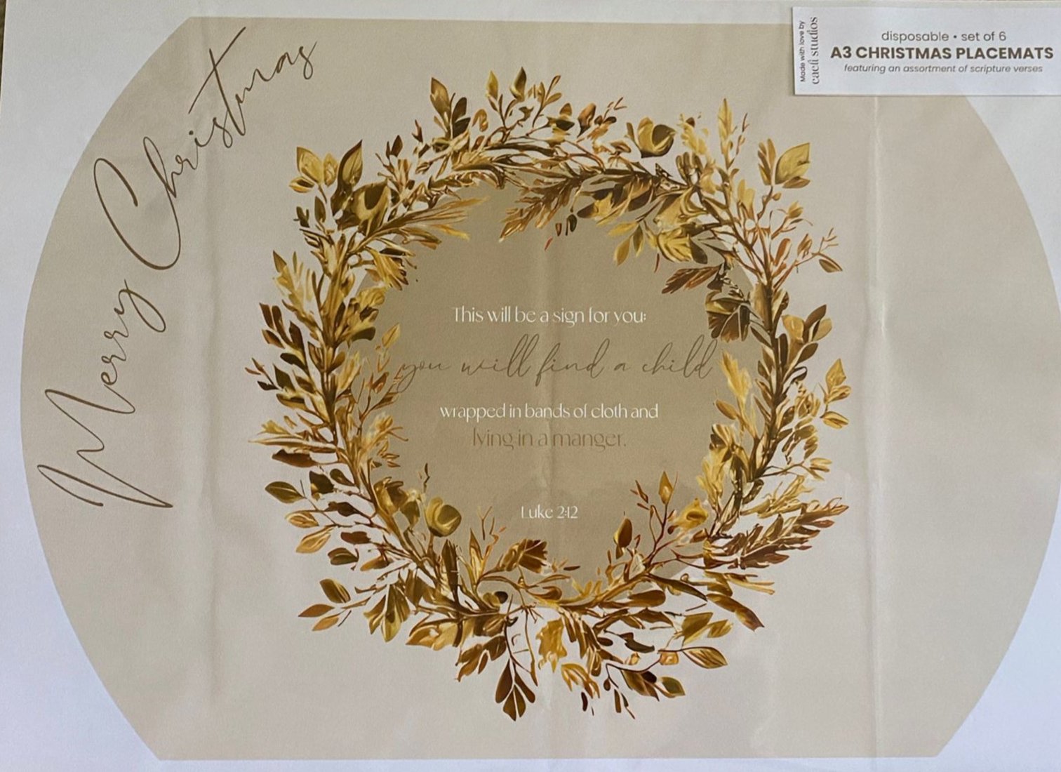 - Inspirational Scripture Verses: Each placemat features a different Bible verse centered on the Christmas season