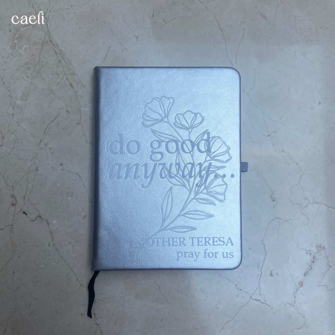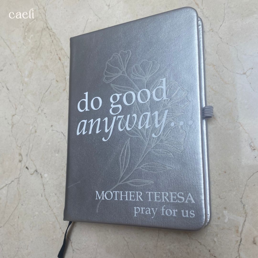 Our elegant A5 Notebook features a delicate floral design paired with the inspiring words, “Do good anyway…”—a tribute to Mother Teresa and her beloved reminder to live with kindness, courage, and faith, no matter the circumstances.