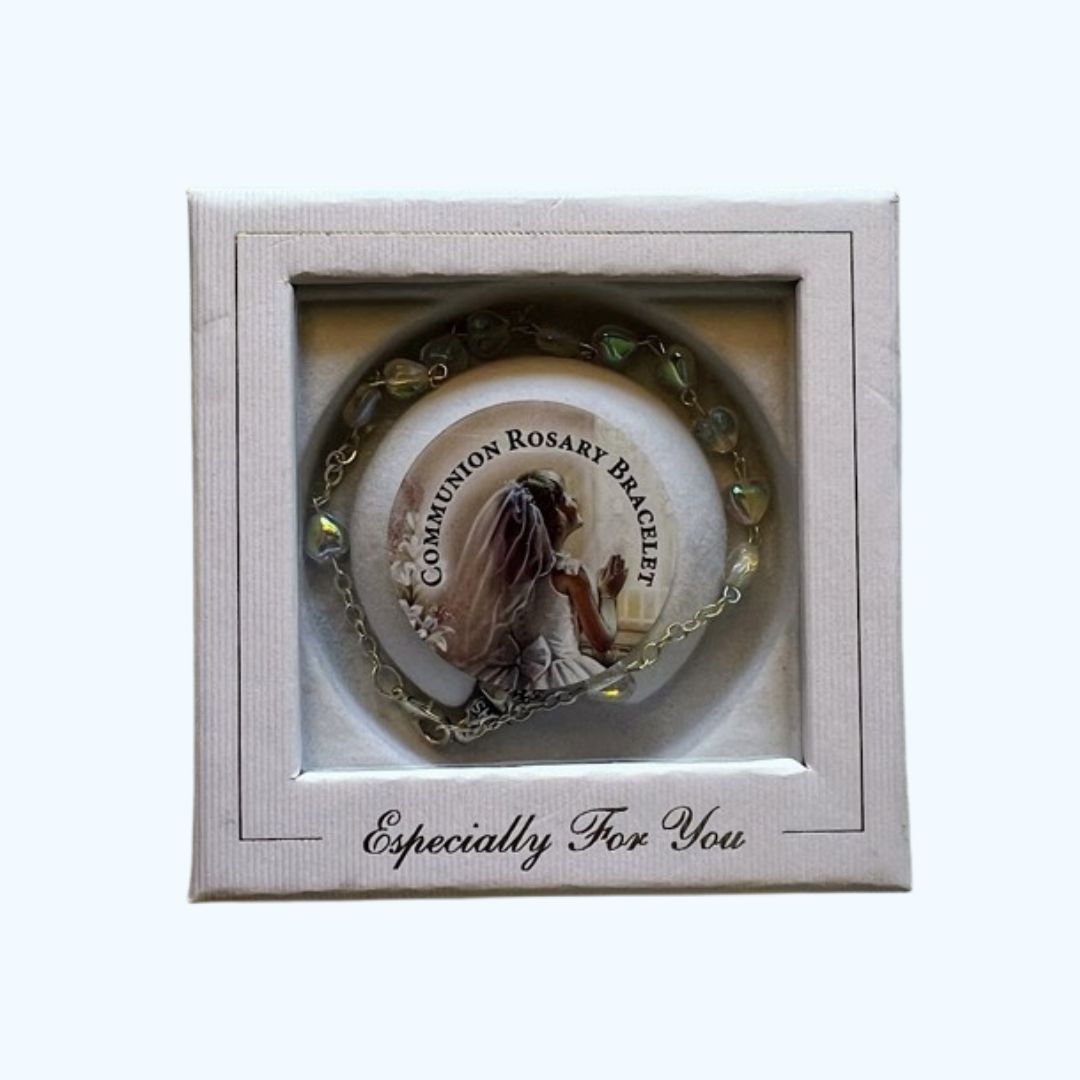 First Holy Communion Rosary Bracelet – Heart Beads & Silver Chalice