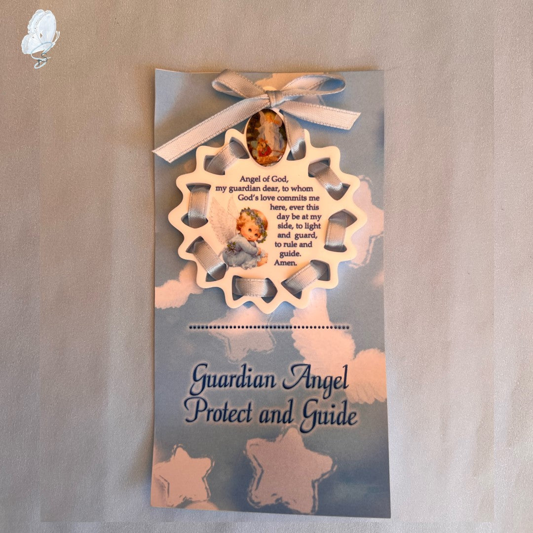 - Guardian Angel Keepsake (Pink or Blue) - A reminder of the child’s heavenly guardian, this keepsake includes the Guardian Angel Prayer. Available in pink or blue.