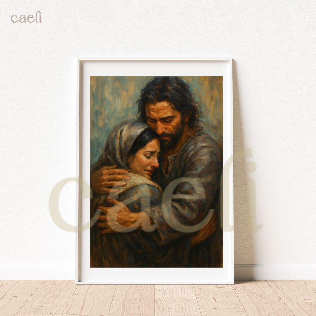 Lágrimas Wall Art | Jesus consoles Mary | A4 Wall Art