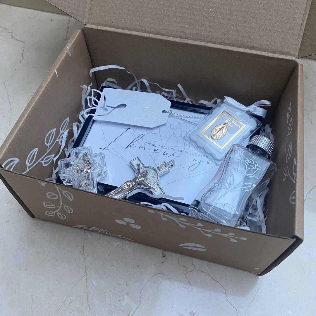 Celebrate the sacred moment of baptism with this beautifully curated gift box, designed to welcome a precious child into the faith. Thoughtfully assembled with meaningful keepsakes, it’s the perfect gift for a baptism celebration.