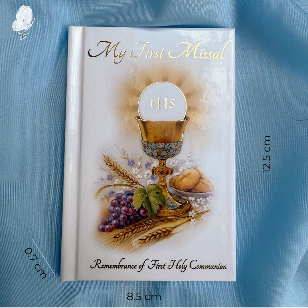 - Pocket-sized hardcover missal for children (12.5 × 8.5 × 0.7 cm)