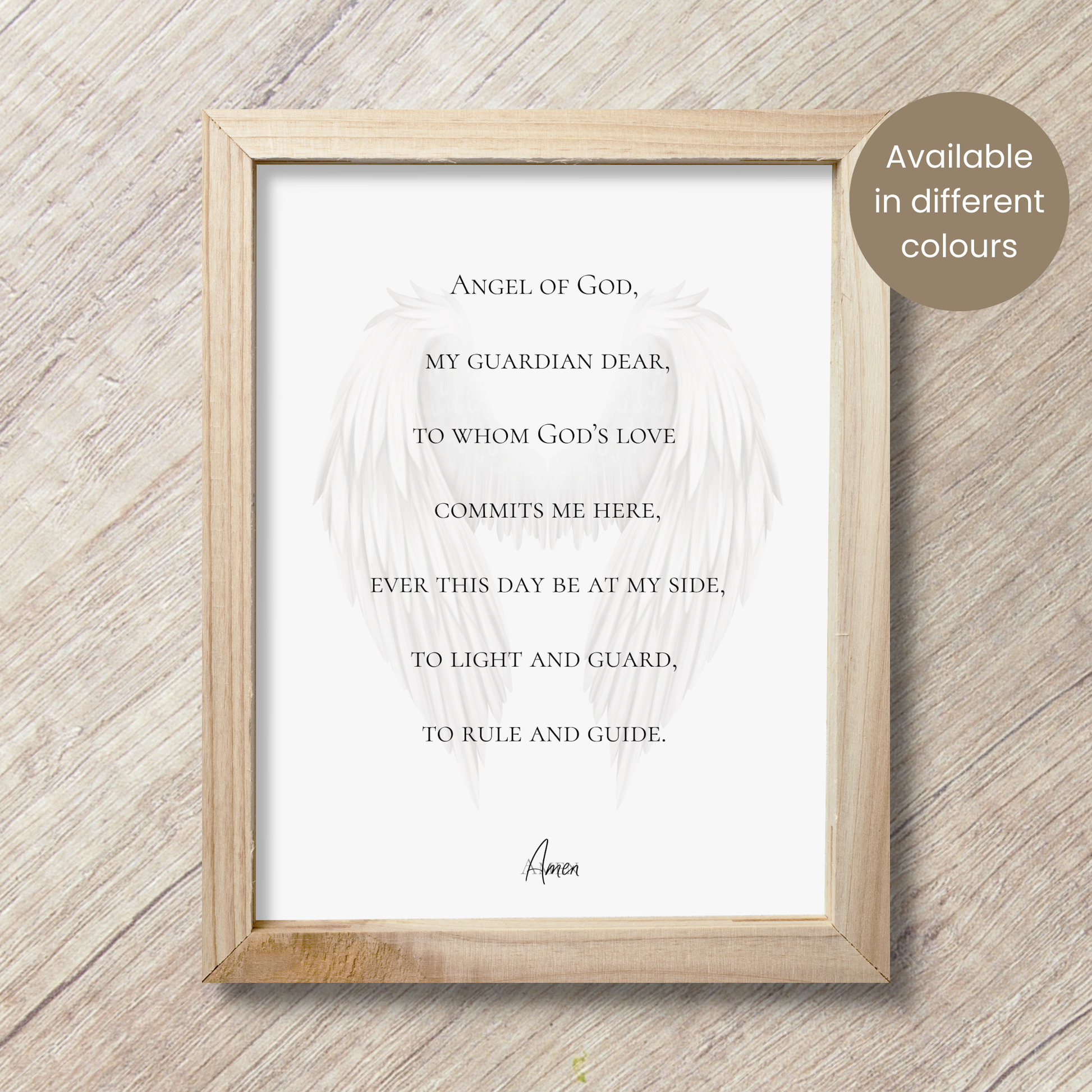This purchase includes a O Angel of God protection prayer wall art design with 5 different colour options. It's perfect for a modern Christian home <3