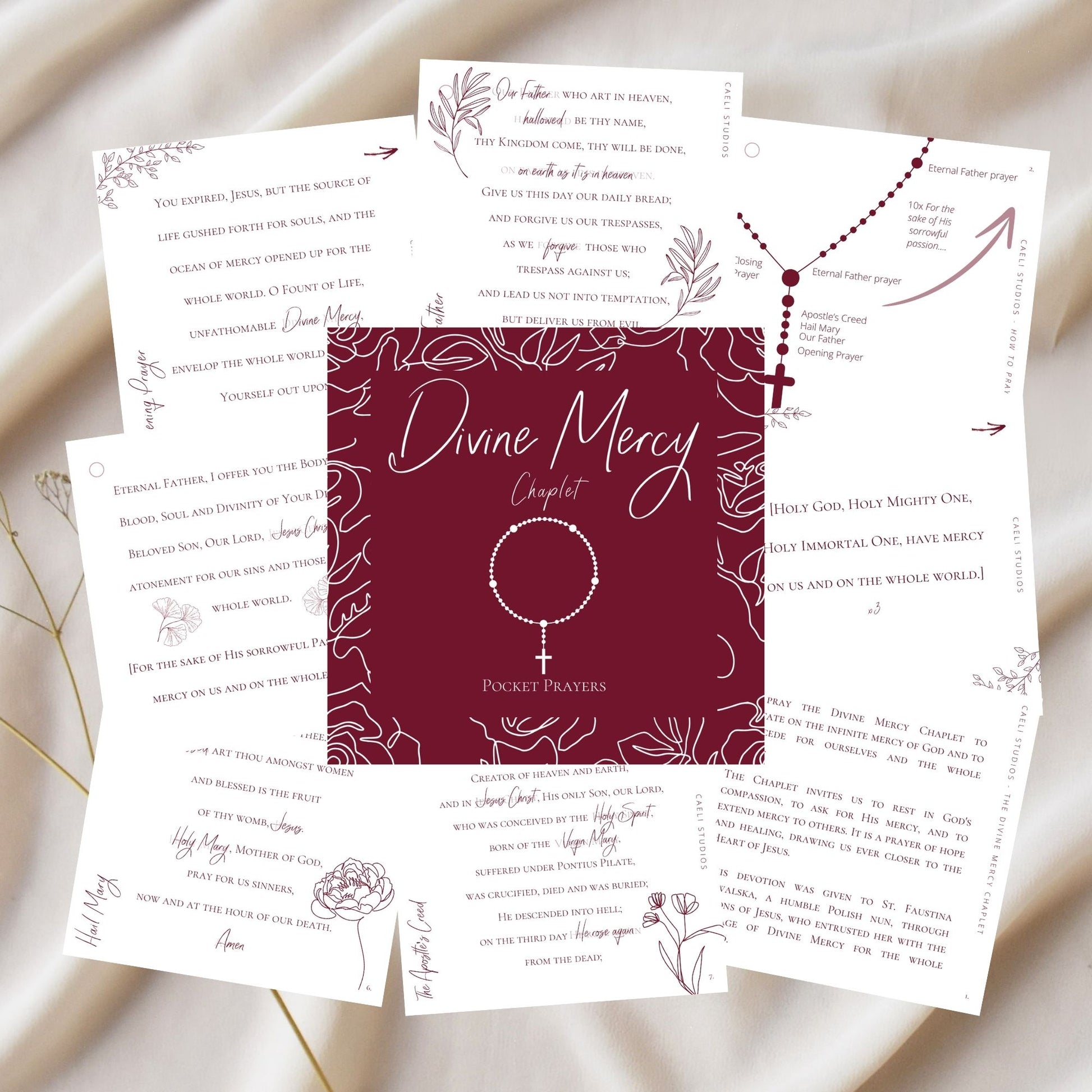 Enter into the heart of God's mercy with this beautifully curated Divine Mercy Prayer Set, designed to support your devotion to Jesus, the Divine Mercy. Featuring essential prayers and meditations, this set is the perfect companion for personal reflection, especially during the 3 o’clock hour or in times of need.