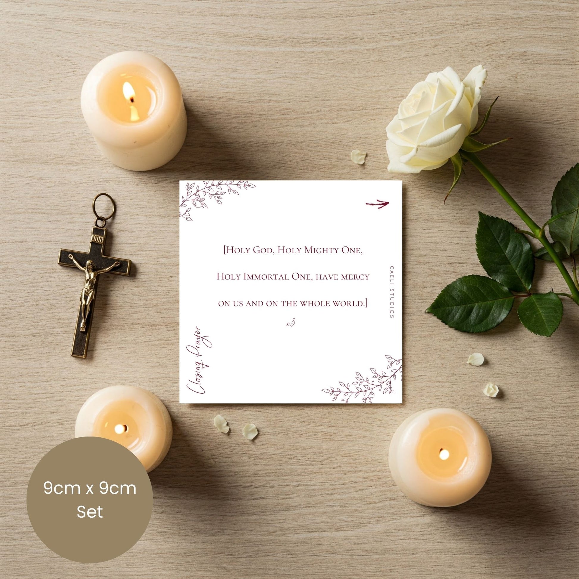 Measuring a convenient 9 cm x 9 cm, this set is compact and easy to carry, allowing you to bring the message of Divine Mercy wherever you go. Printed on premium 250gsm gloss cardstock and bound with a sturdy ring, it is crafted for both beauty and daily use.
