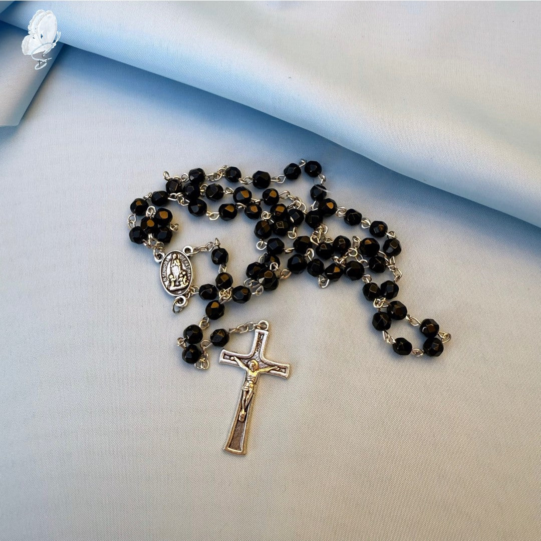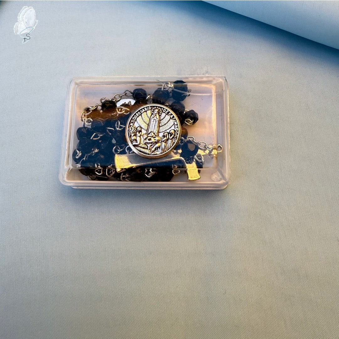 Portugal Drop: Fatima Rosary with Black Beads and Shepherd Children
