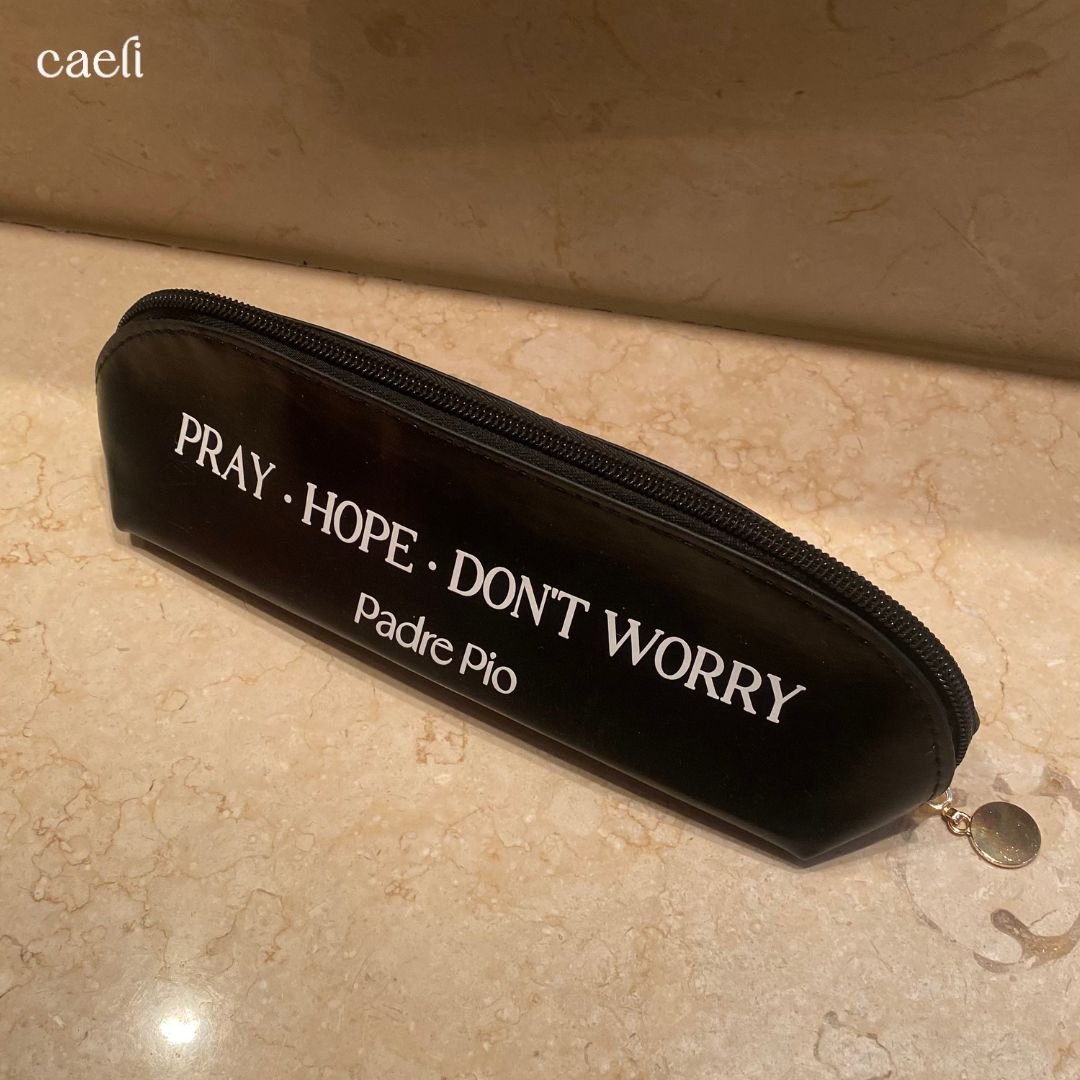 Pray Hope Don't Worry Pencil Case | Faux Leather Bag | Padre Pio Pencil Case