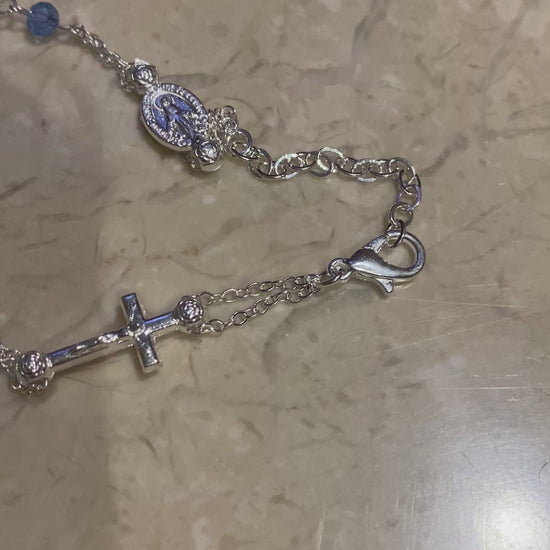 Dainty rosary bracelet with light blue beads