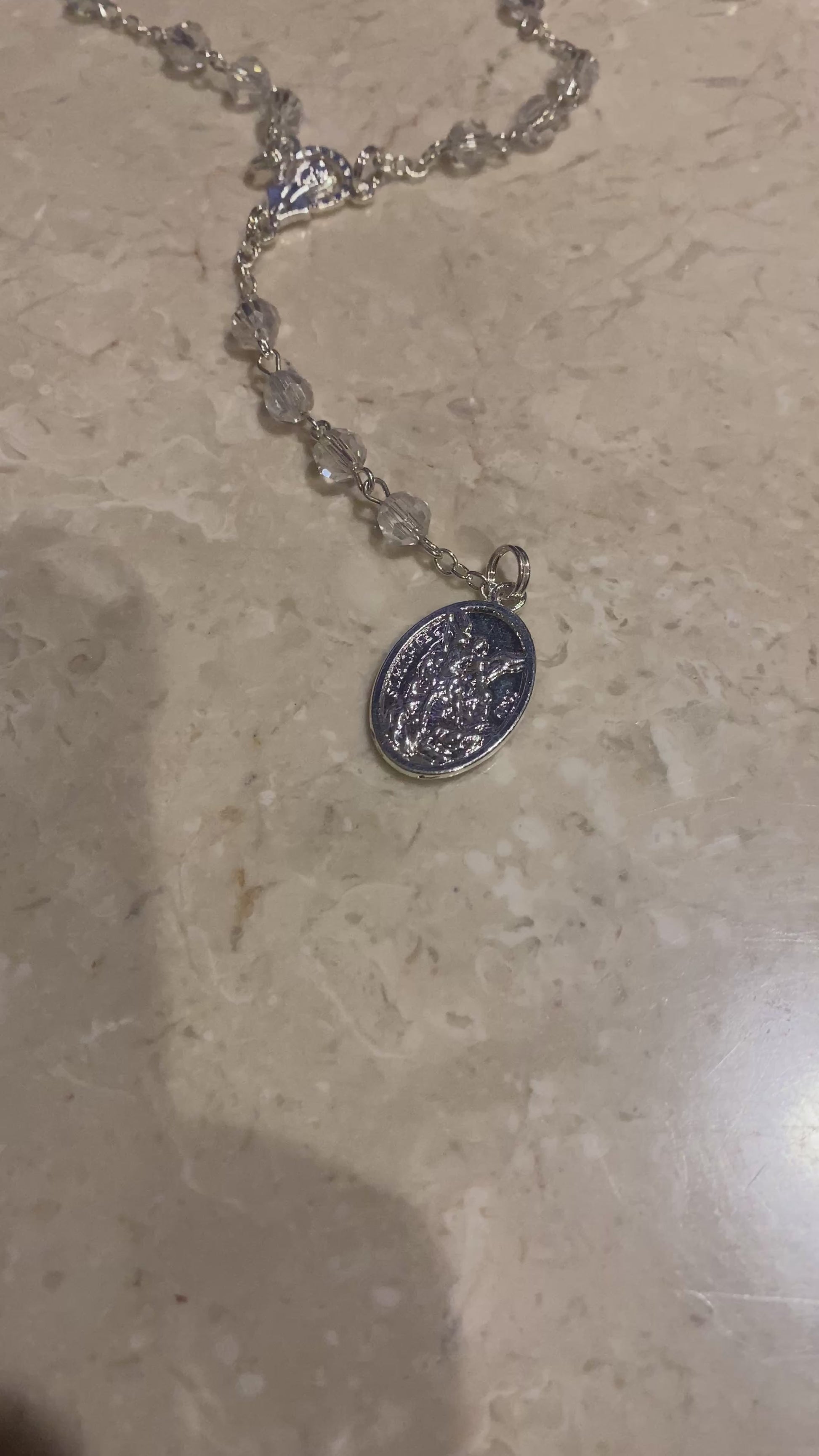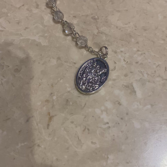 This Clear St. Michael Chaplet Rosary is a beautifully crafted devotional piece designed to honour St. Michael the Archangel and his protection. Sourced from The Basilica of St John Lateran and measuring approximately 39 cm from top to bottom, it is compact and perfect for daily prayer or carrying with you.