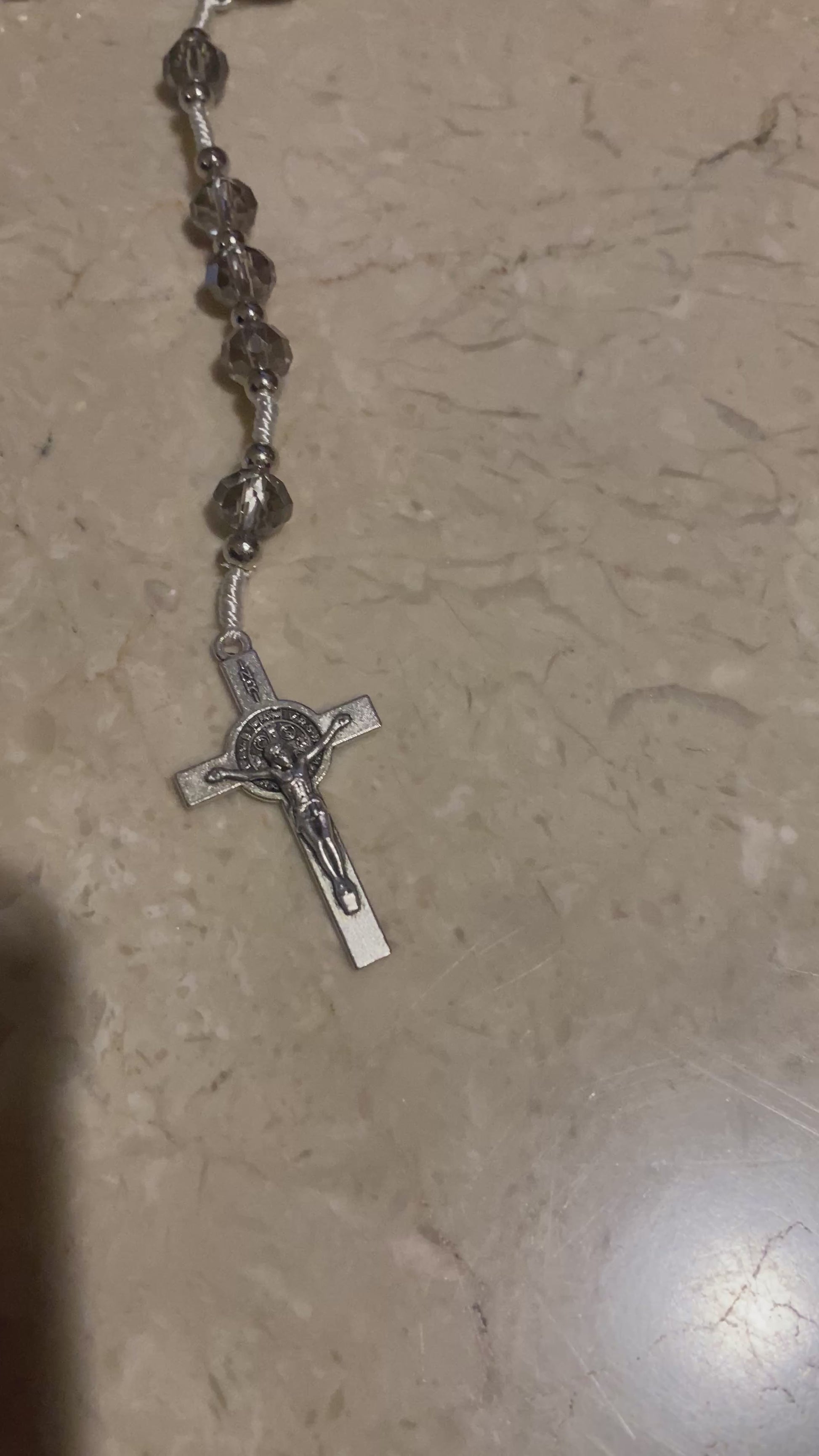 - Features St. Benedict silver-tone crucifix and centerpiece