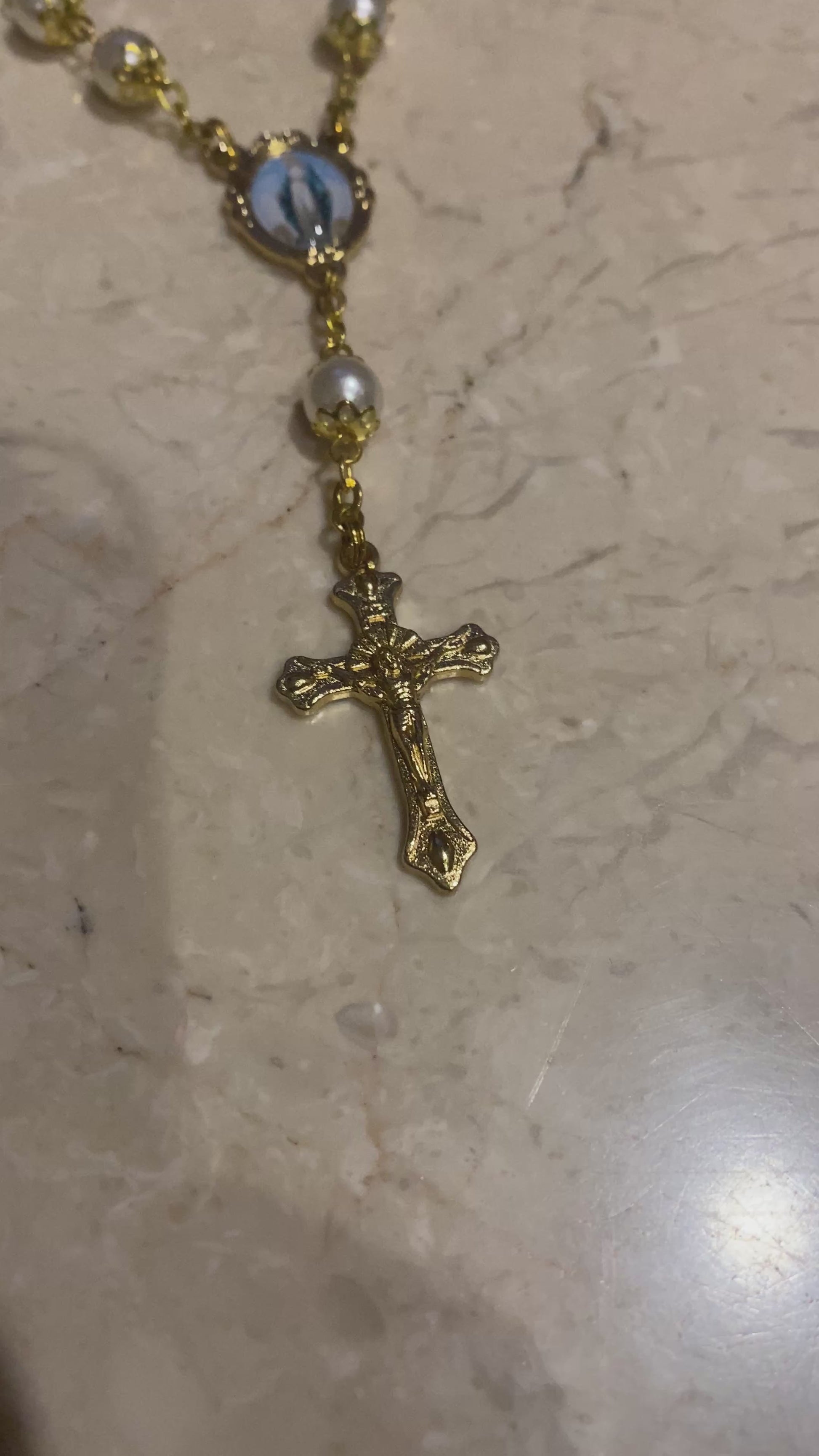 Featuring smooth pearl-style beads and gold-tone accents, including a delicate crucifix and centrepiece, this rosary combines timeless beauty with practicality. Lightweight yet meaningful, it’s ideal for daily devotion, road trips, or as a thoughtful gift for someone who travels often.