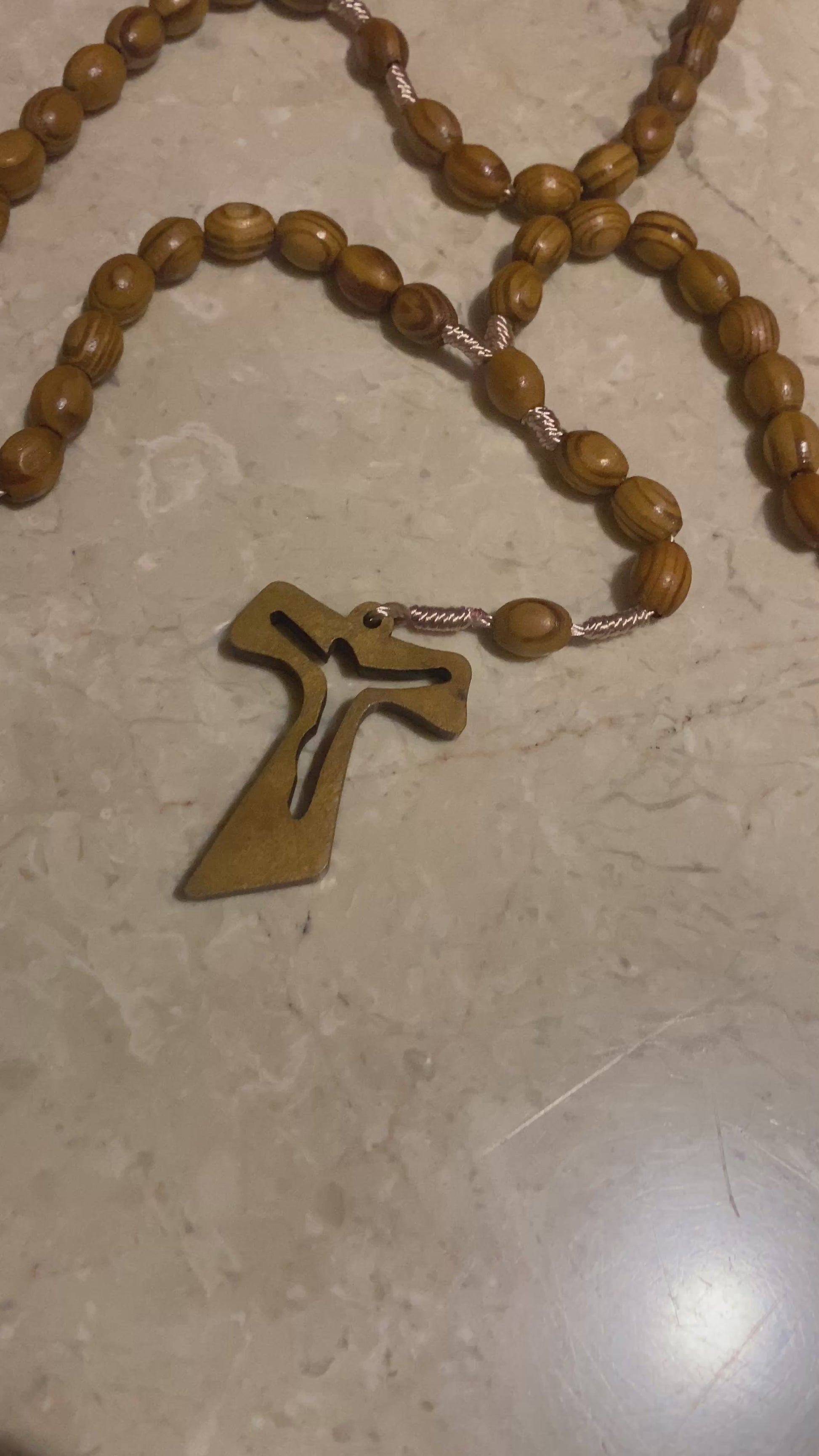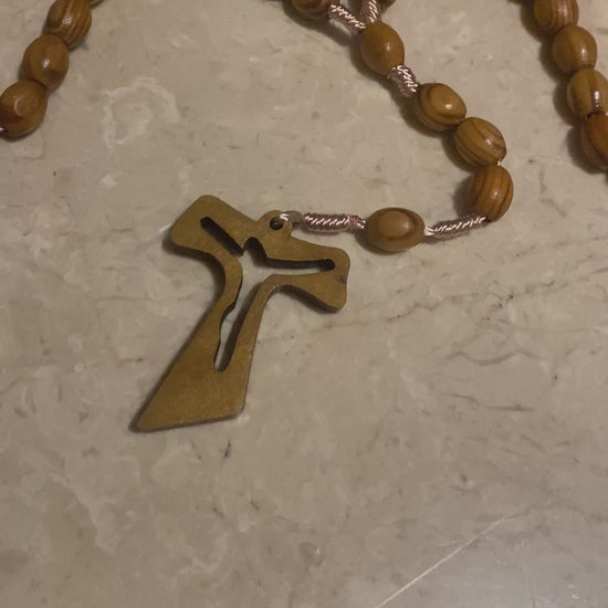 This Wooden Tau Cross Rosary is a simple and classic devotional piece, measuring approximately 45 cm from top to bottom. Crafted from smooth, durable wood, it features a Tau Cross crucifix, a timeless symbol of faith and devotion.