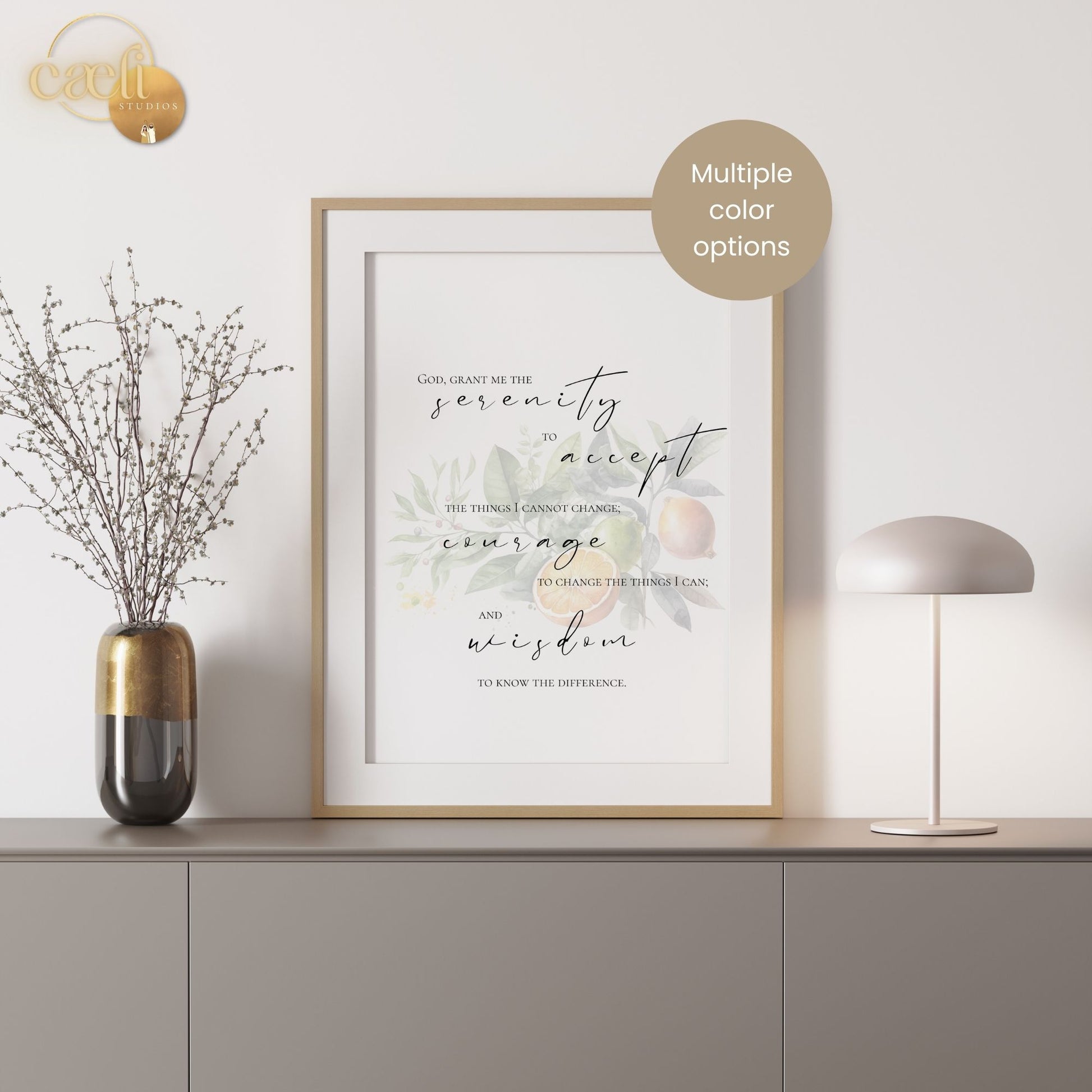 This purchase includes a Serenity Prayer wall art design with 3 different colour options. It's perfect for a modern Christian home <3