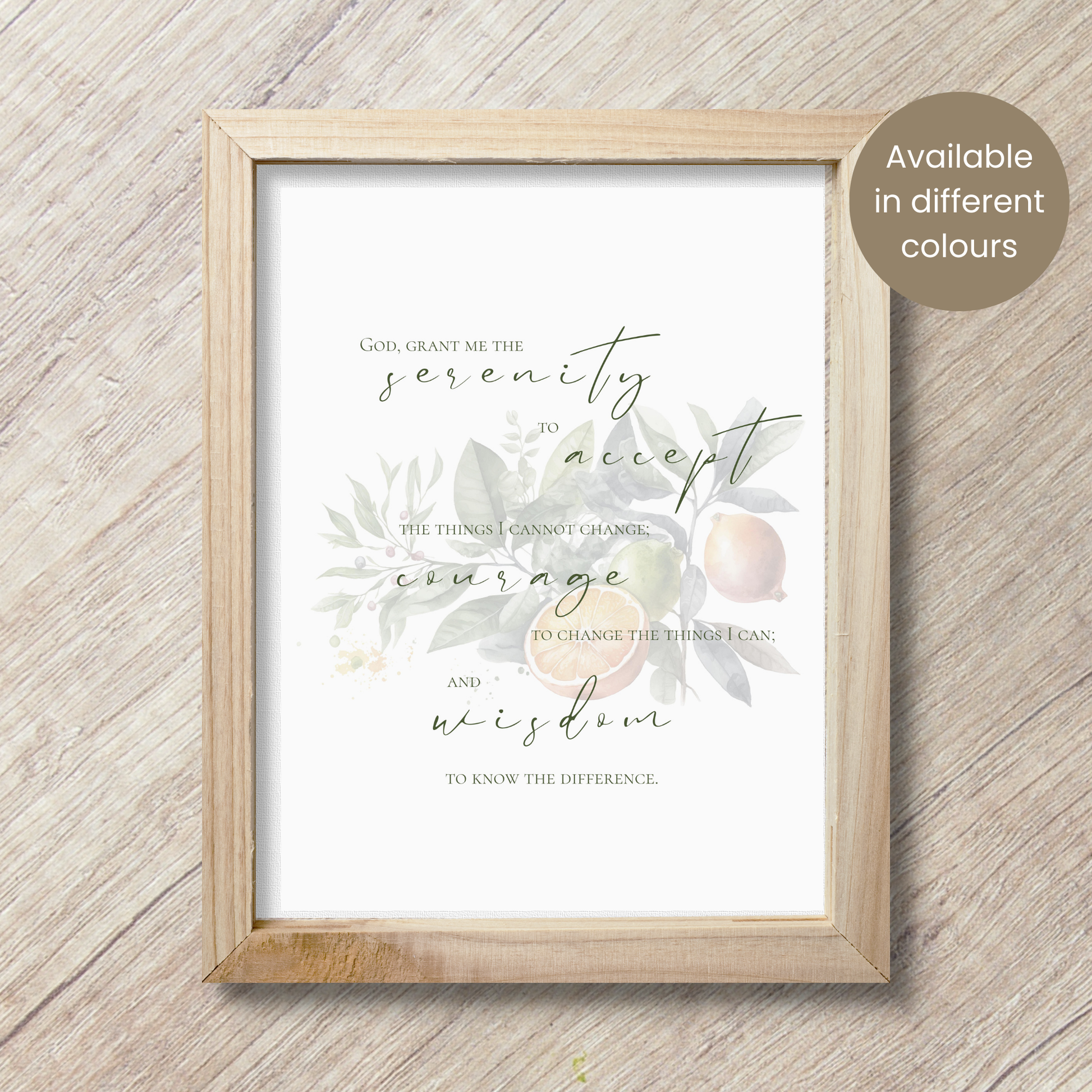 Beautiful Serenity Prayer wall art perfect for your home or to use as a prayer card. Includes 3 different colours.