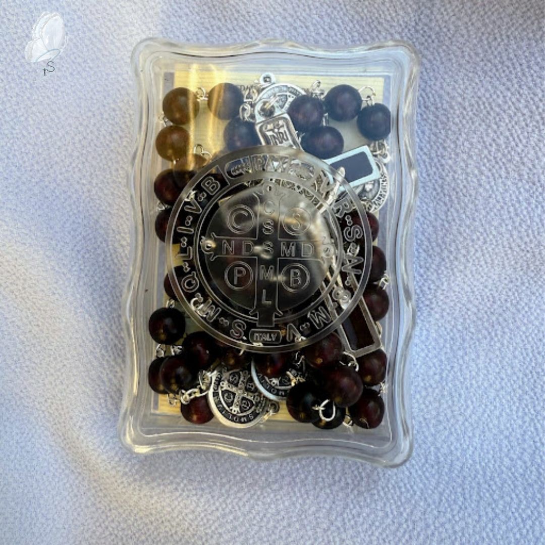 Presented in a perspex box embossed with the St. Benedict medal, this set includes a small explanatory card detailing the significance of the St. Benedict medal and crucifix. With a total length of 53cm, this rosary is ideal for daily devotion and a meaningful gift for those seeking spiritual protection and strength.