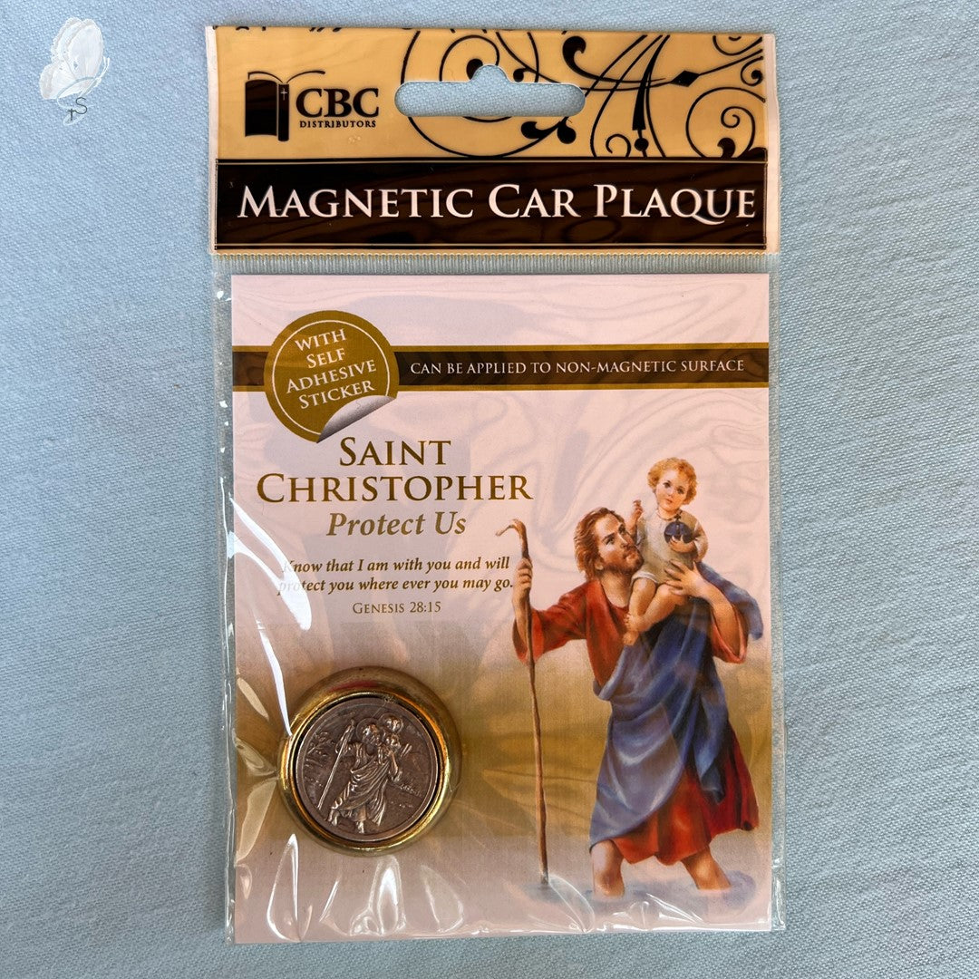 This St. Christopher Magnetic Car Plaque is a meaningful accessory for your vehicle, featuring a detailed depiction of the patron saint of travellers. Crafted from durable materials, it serves as a constant reminder of protection and faith on the road. Designed for versatility, it includes both a magnetic backing and a self-adhesive sticker, allowing for easy attachment to various surfaces inside your car. Whether placed on a magnetic area or adhered to a non-magnetic surface, this plaque offers a sense of reassurance during your journeys. A thoughtful gift for loved ones embarking on travels or as a personal token of spiritual comfort.