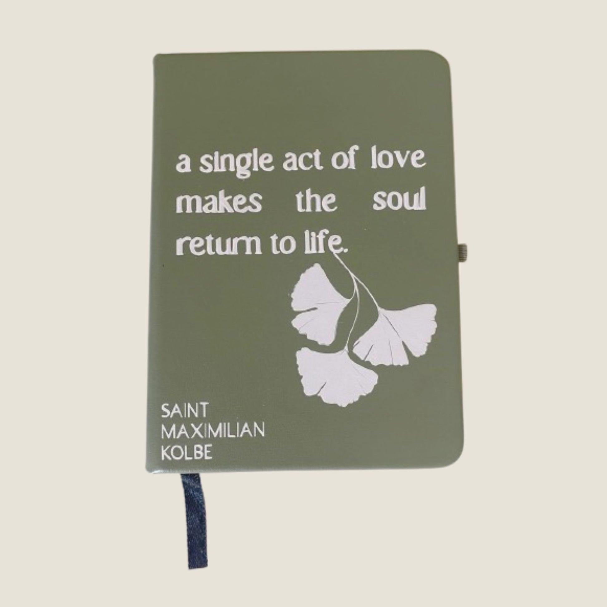 Our elegant A5 Notebook, beautifully inscribed with the powerful quote from St Maximillian Kolbe: "A single act of love makes the soul return to life."