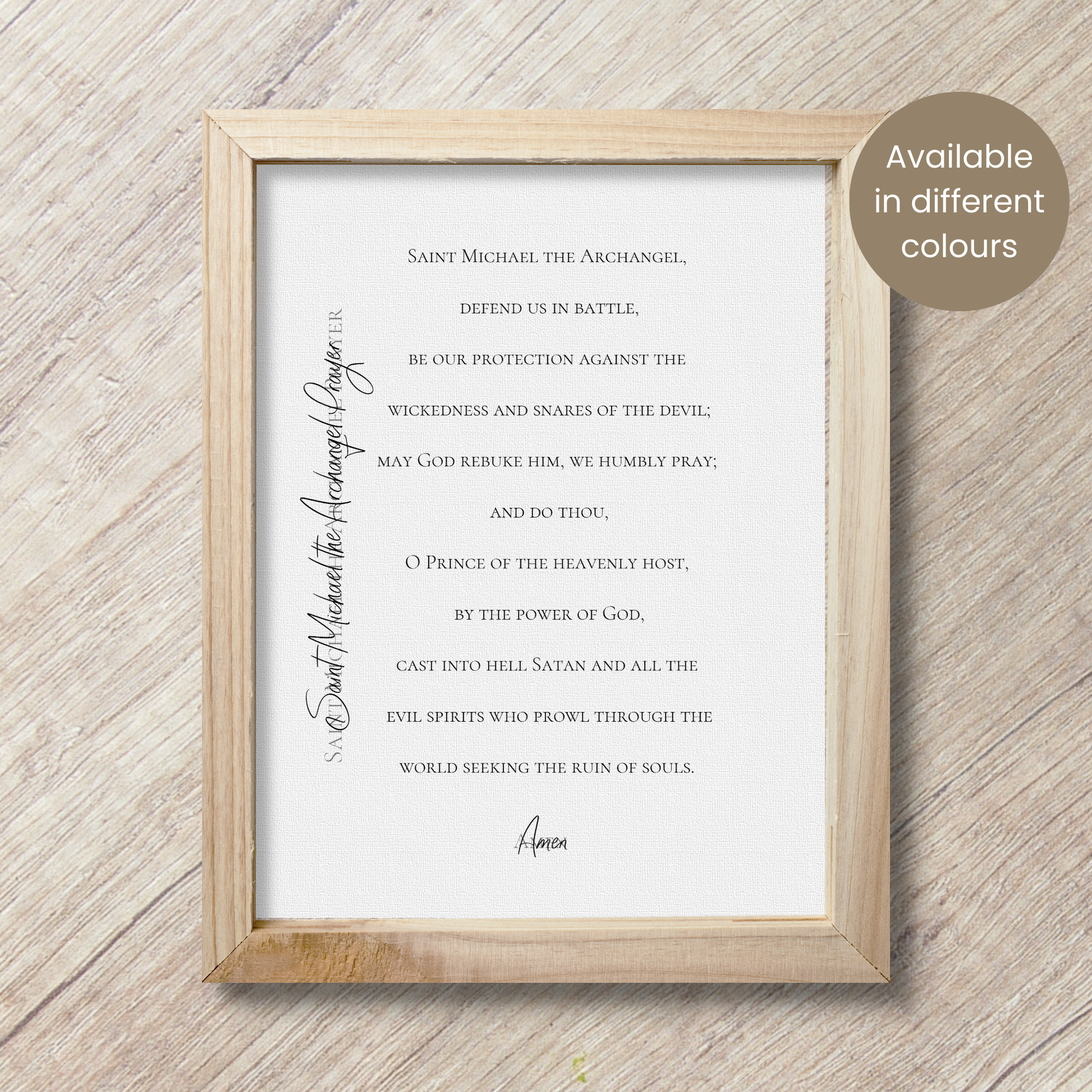 Beautiful St. Michael the Archangel Protection Prayer wall art perfect for your home or to use as a prayer card. Available in 9 different colours.