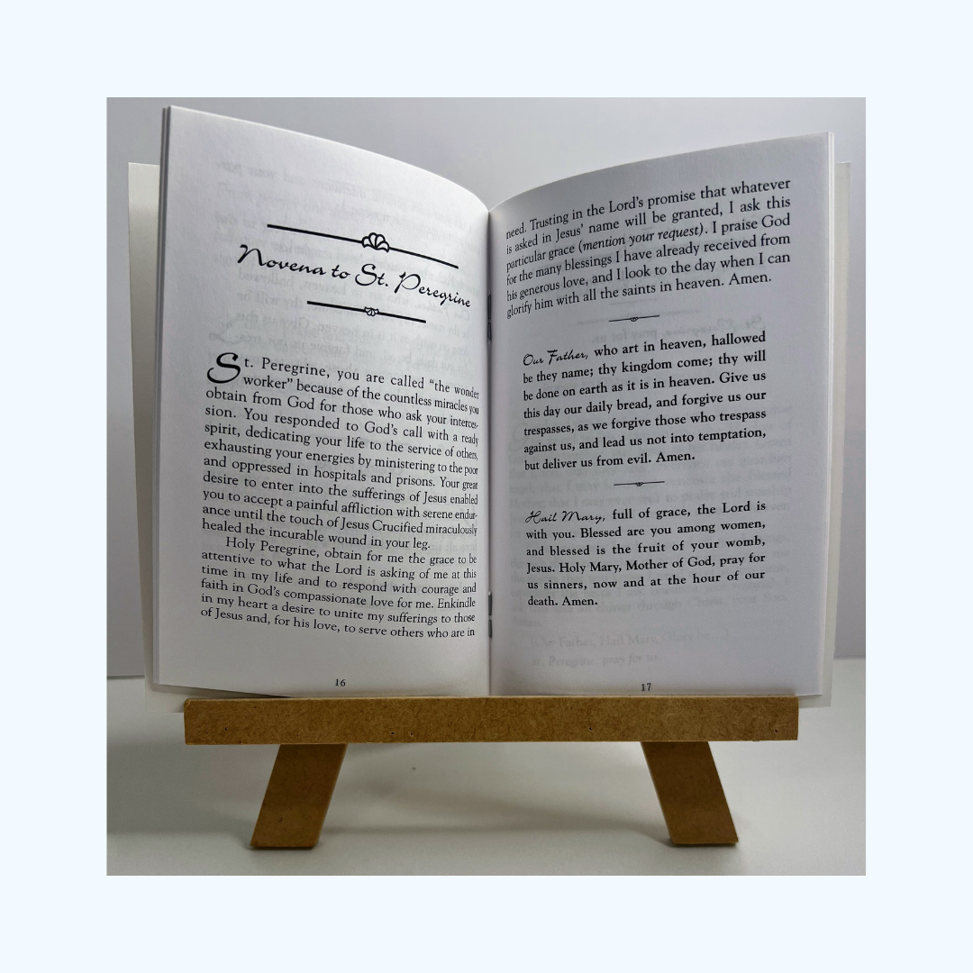 This booklet contains well-known prayers to St Peregrine, as well as the powerful novena dedicated to him. He is invoked as the patron of Cancer patients, people with AIDS and those who suffer with skin diseases.