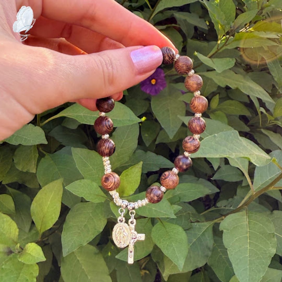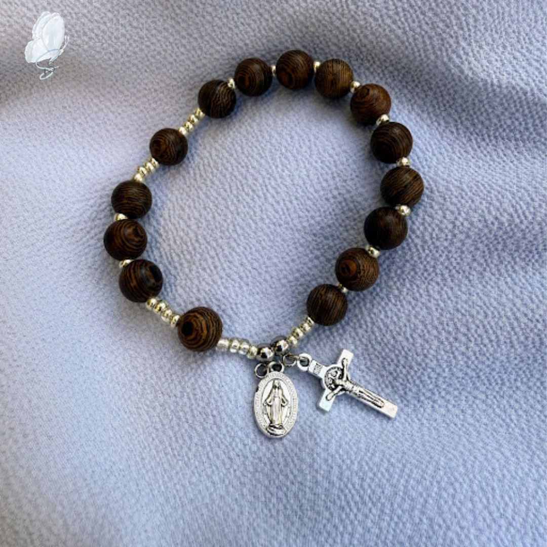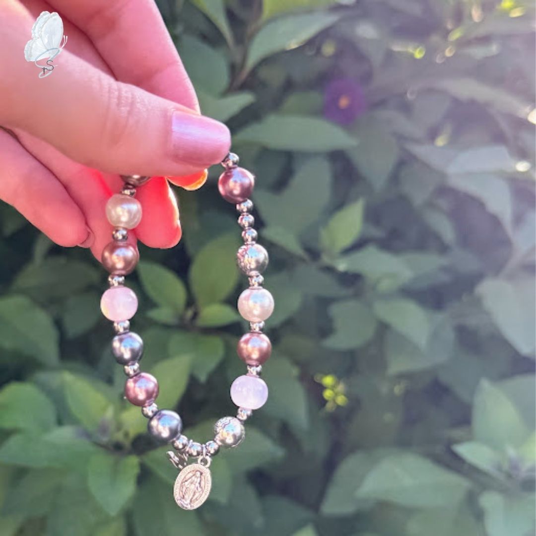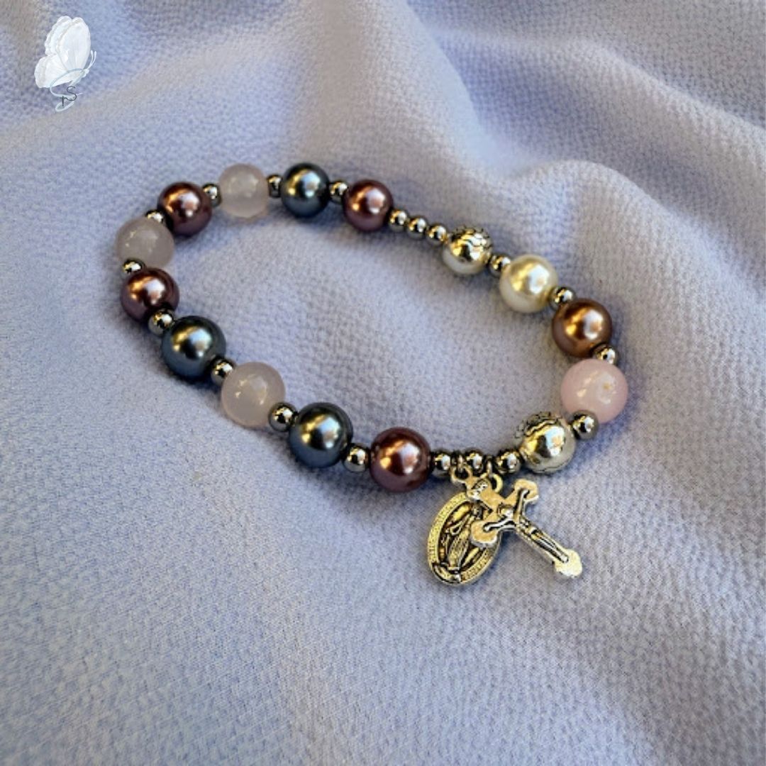 Every bracelet is handmade using a variety of beads and religious medals, each one chosen with care. These rosary bracelets make thoughtful gifts or personal keepsakes for daily devotion.