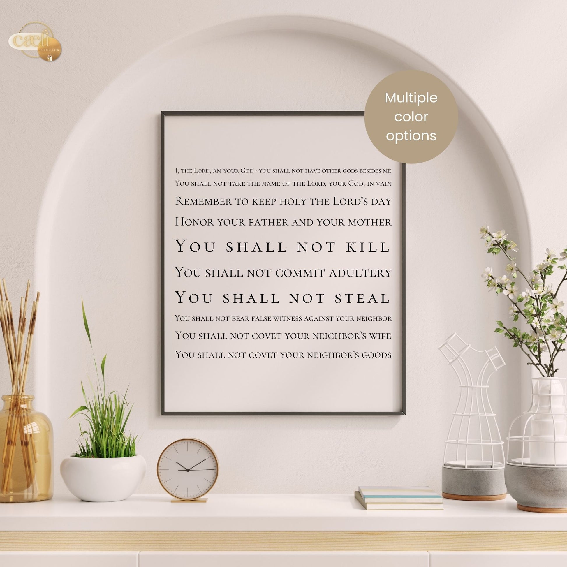 This purchase includes a 10 Commandments scripture verse wall art design with 9 different colour options. It's perfect for a modern Christian home <3