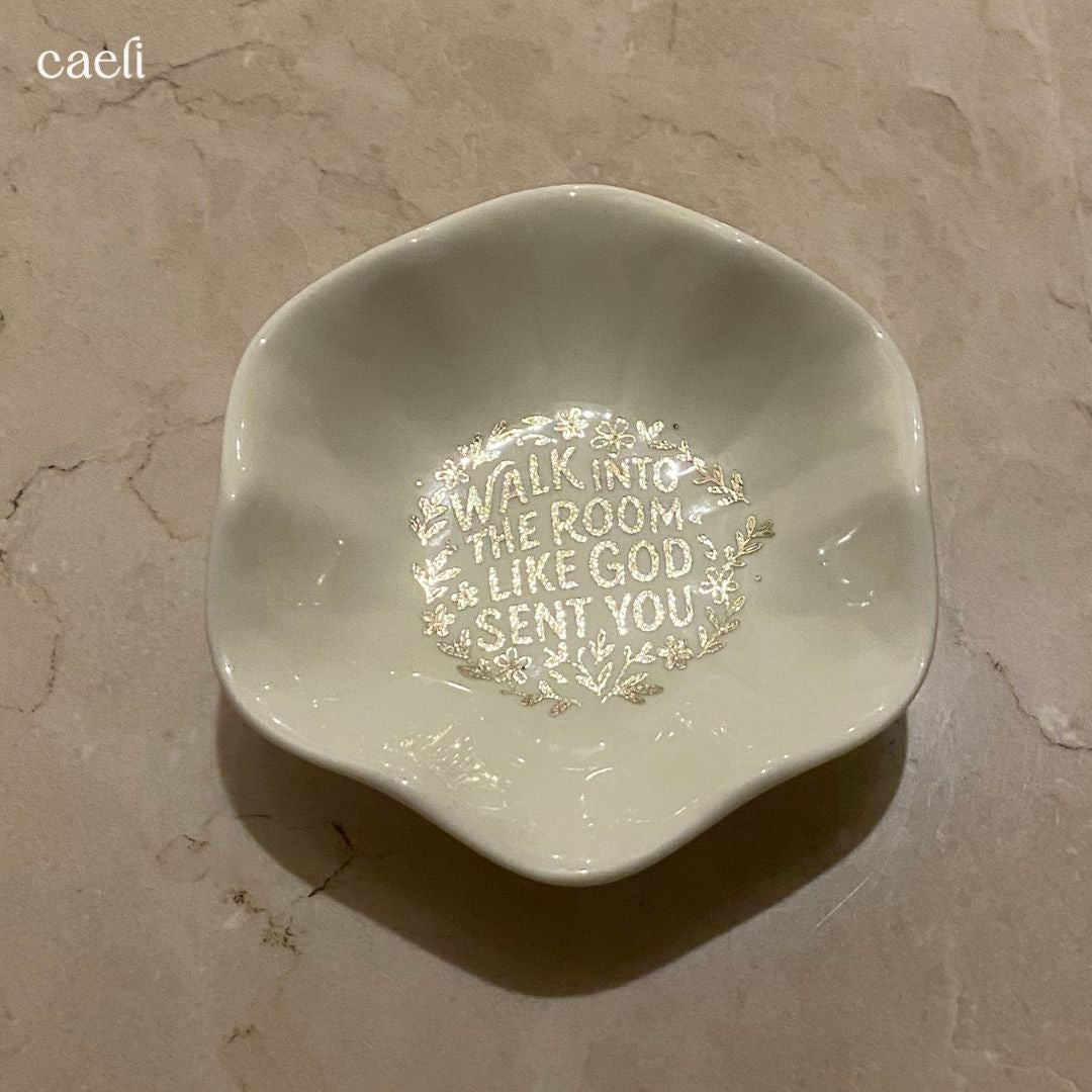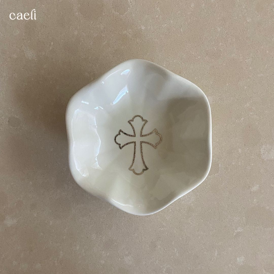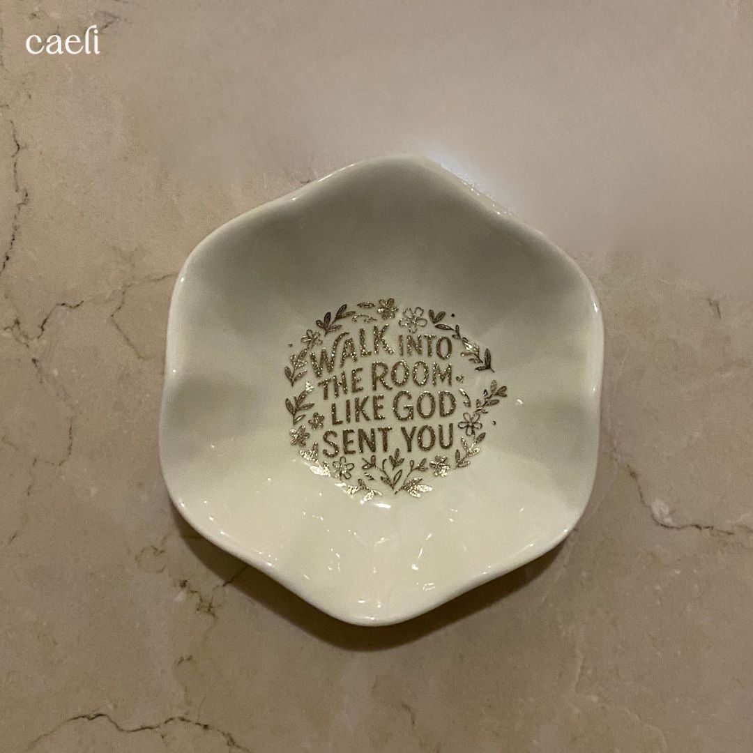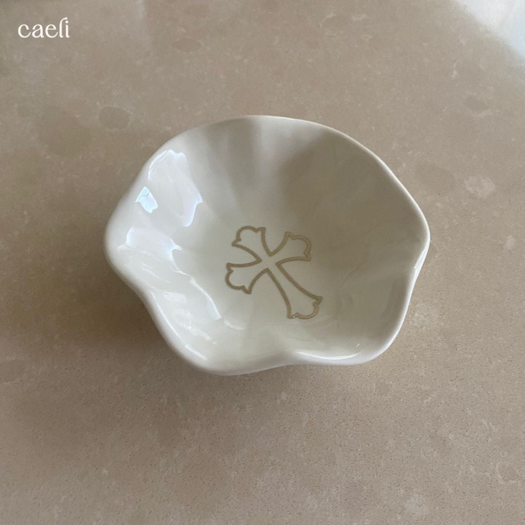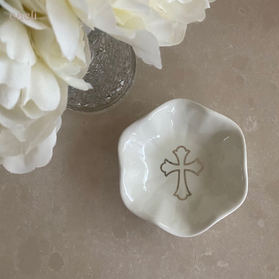 Simple, elegant, and meaningful—our cream ceramic trinket tray features a subtle gold design at its center, making it a beautiful addition to any bedside table, prayer corner, or desk. Whether holding your favorite rosary, small jewelry, or daily reminders, this tray offers a quiet moment of reflection with every glance.