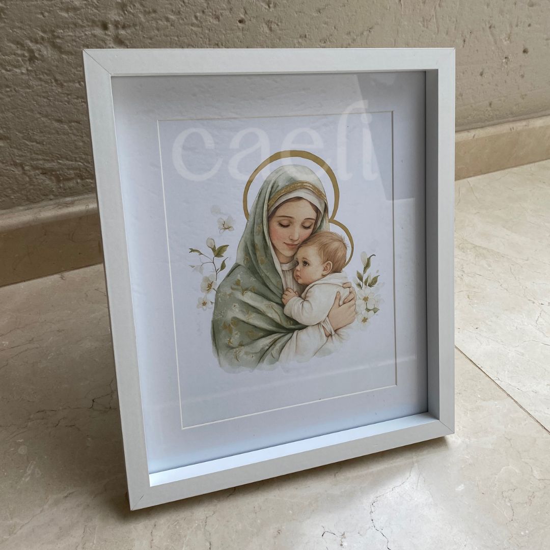 Theotokos Wall Art (Green) | Virgin Mary and Baby Jesus | Marian Devotion | A4 Gilded Wall Art