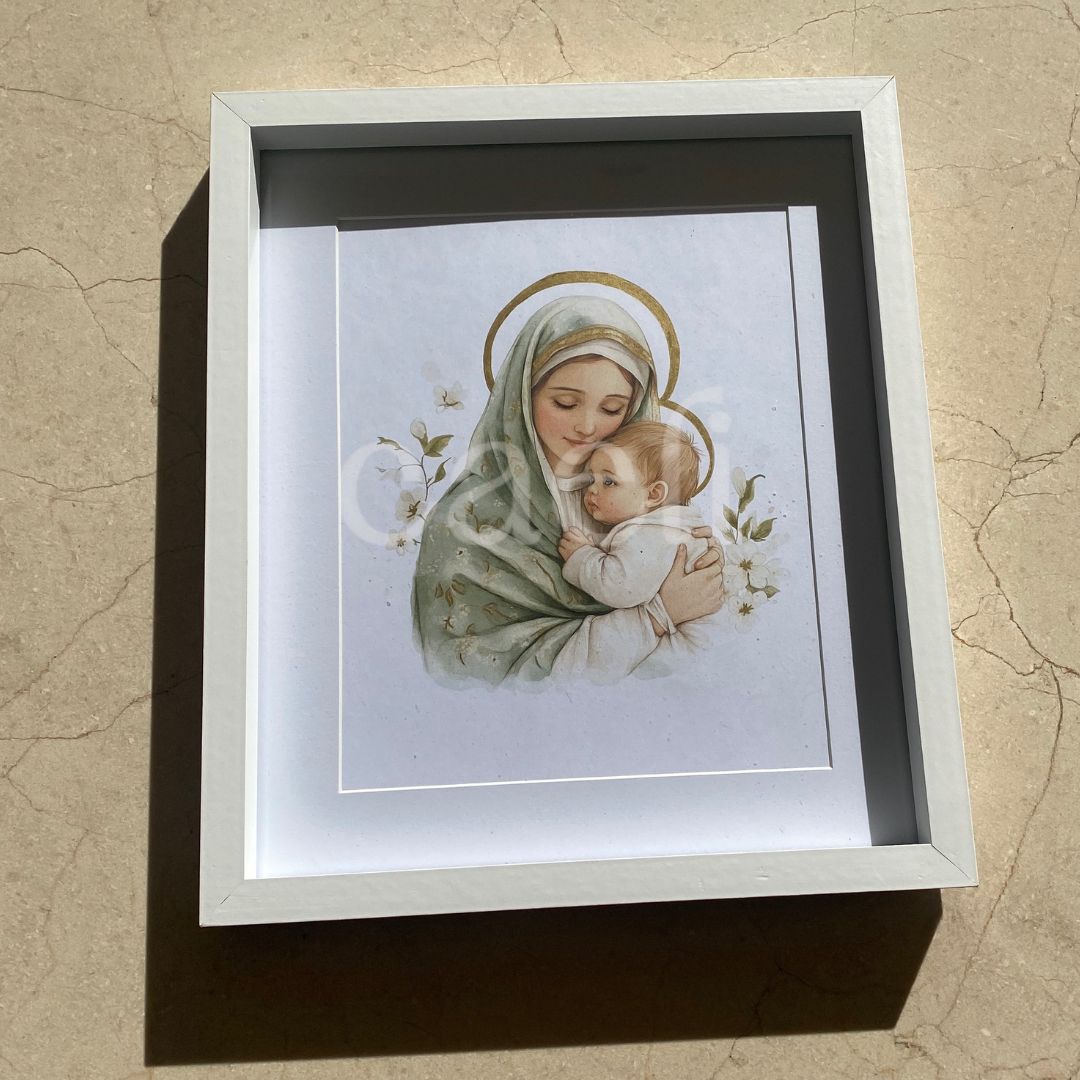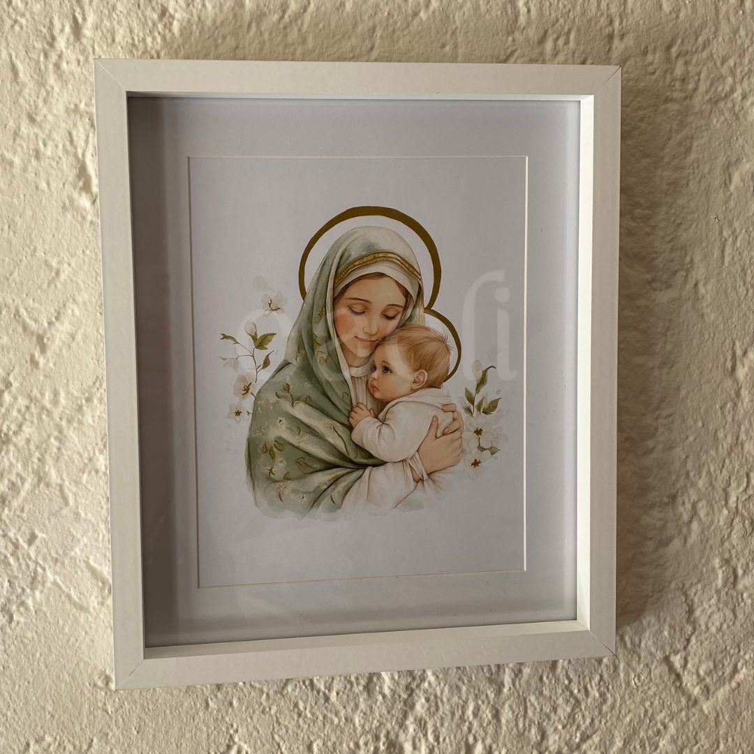 Bring grace and serenity into your home with this beautifully gilded wall art of Mary and the Baby Jesus. Featuring delicate green and gold accents, this sacred image captures the quiet intimacy of the Madonna and Child — a timeless reminder of love, purity, and divine peace.