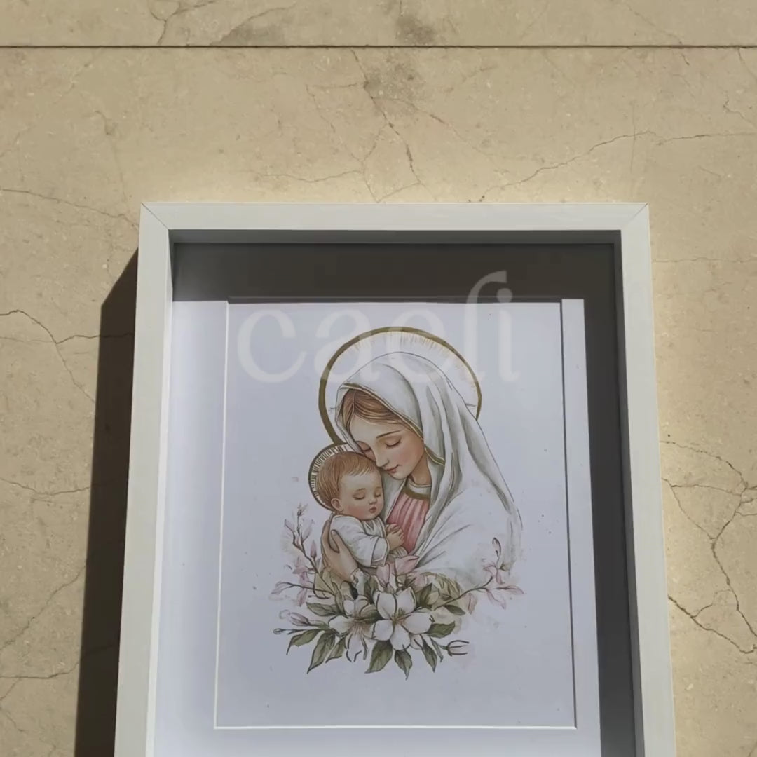 Bring grace and serenity into your home with this beautifully gilded wall art of Mary and the Baby Jesus. Featuring delicate pink and gold accents, this sacred image captures the quiet intimacy of the Madonna and Child — a timeless reminder of love, purity, and divine peace.